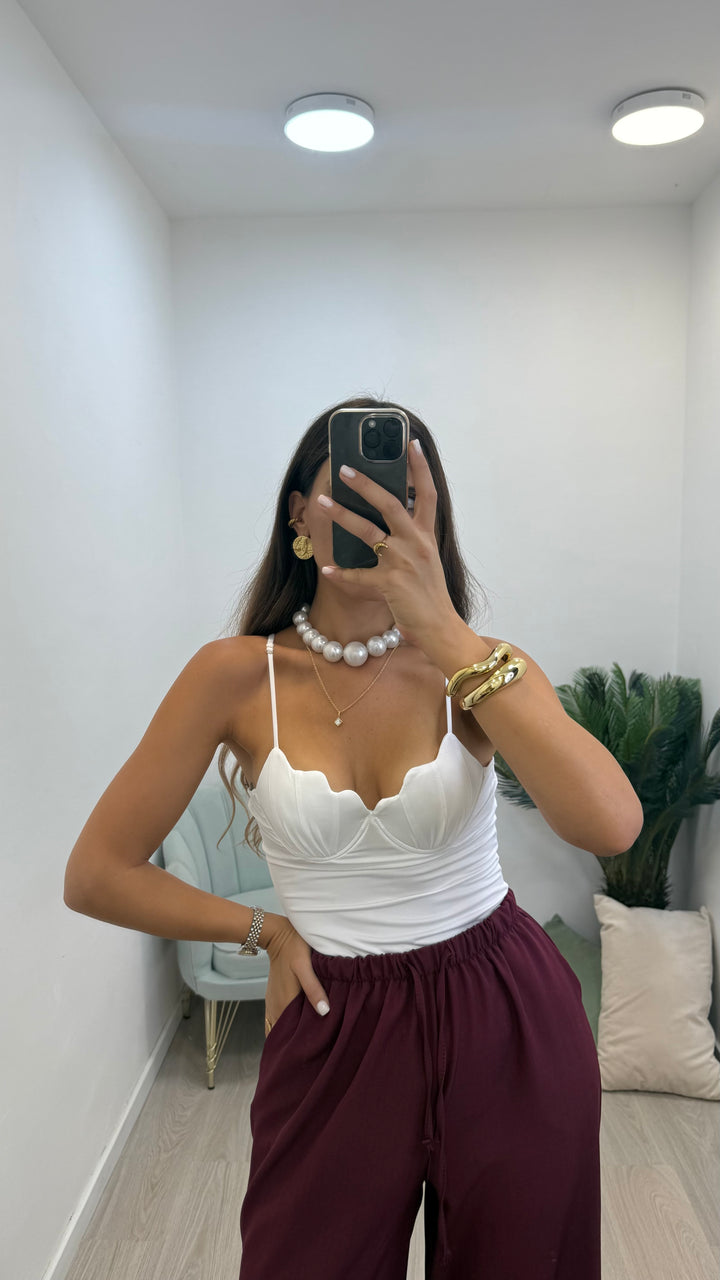 - La camicia ha lunghezza crop con elastico regolabile