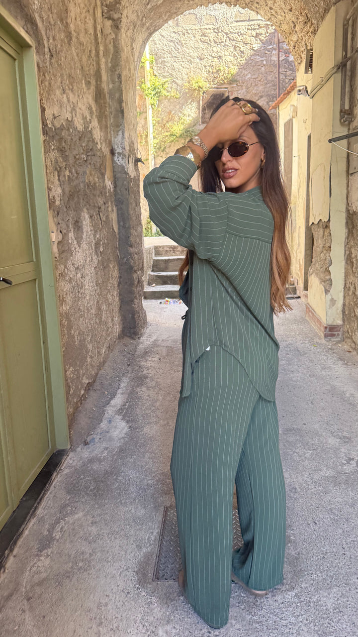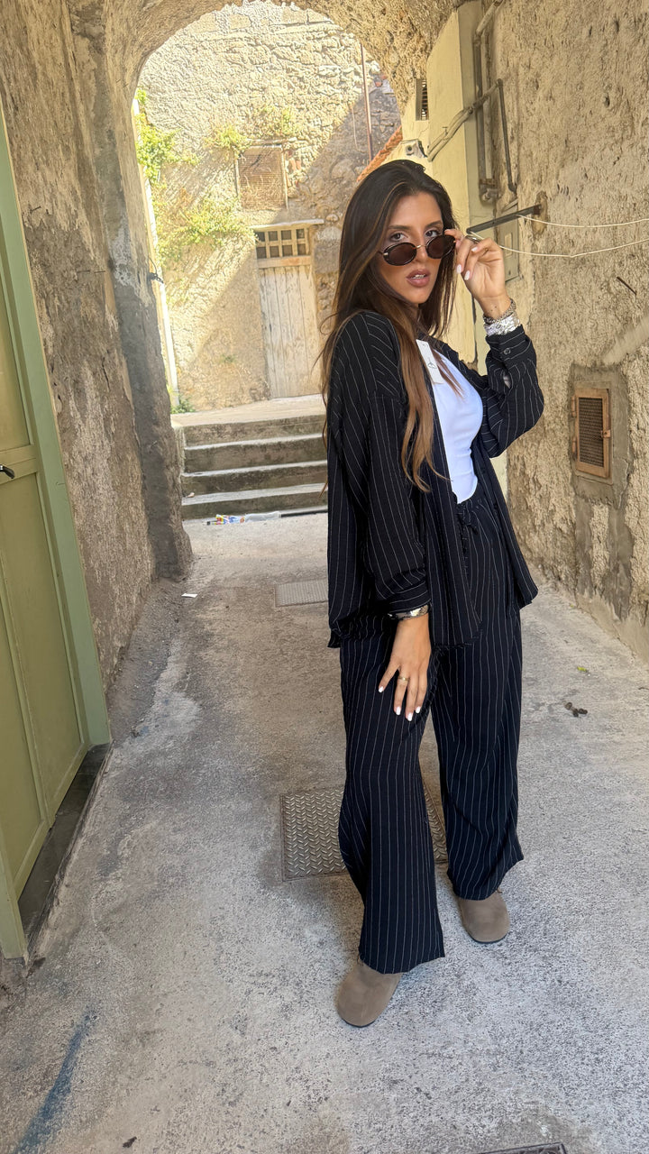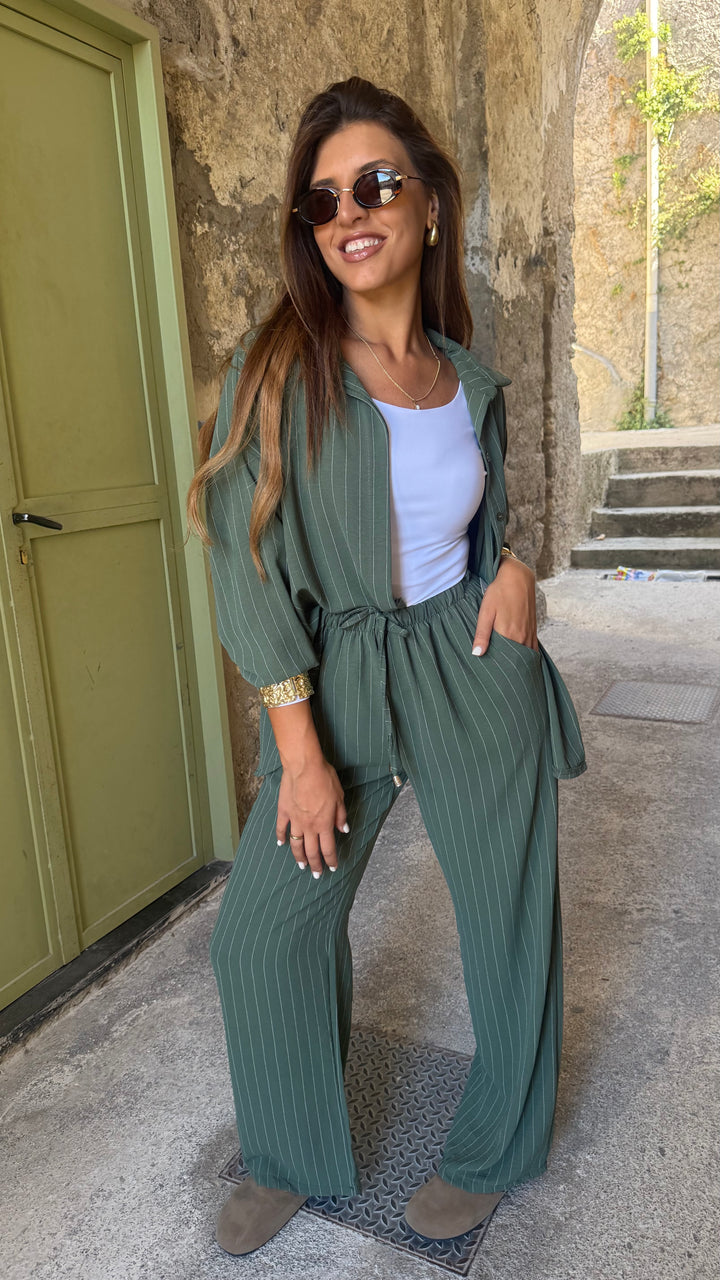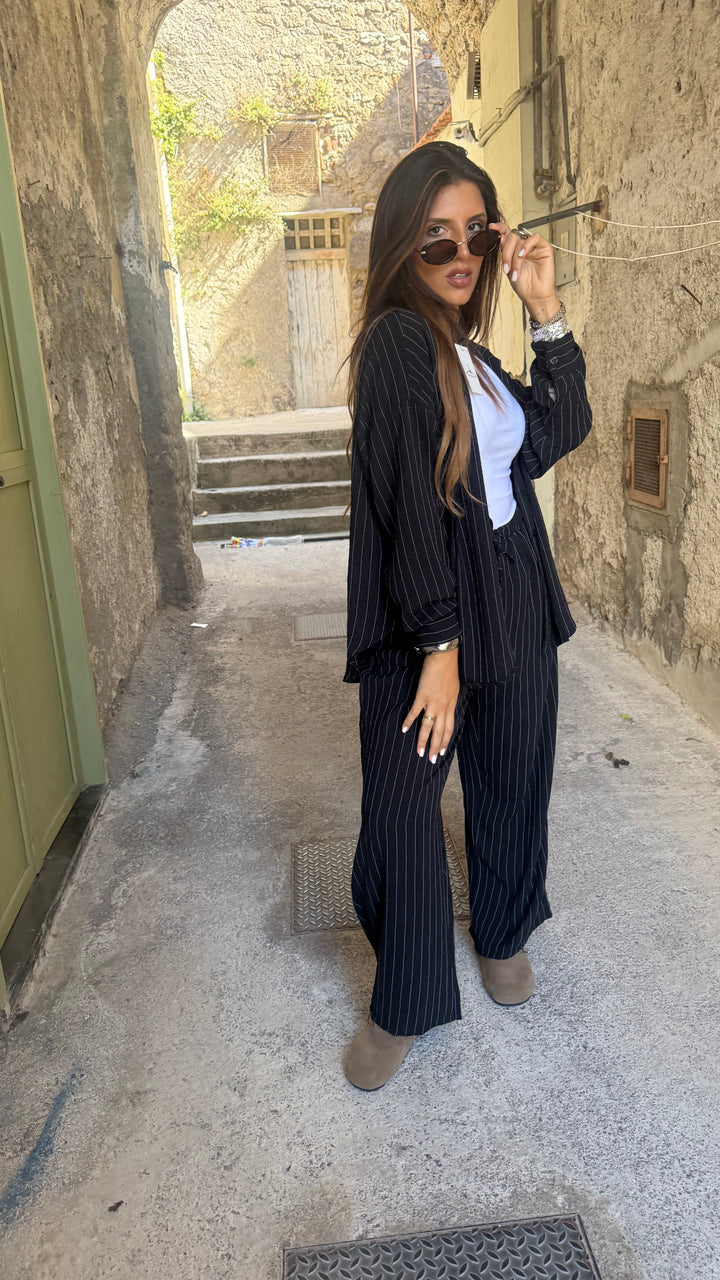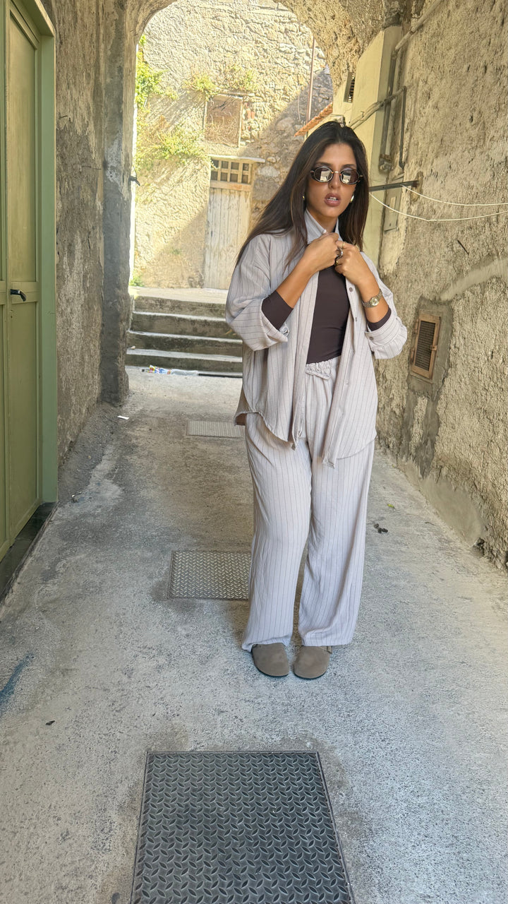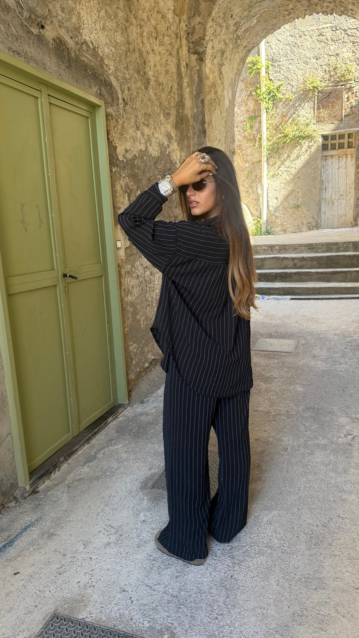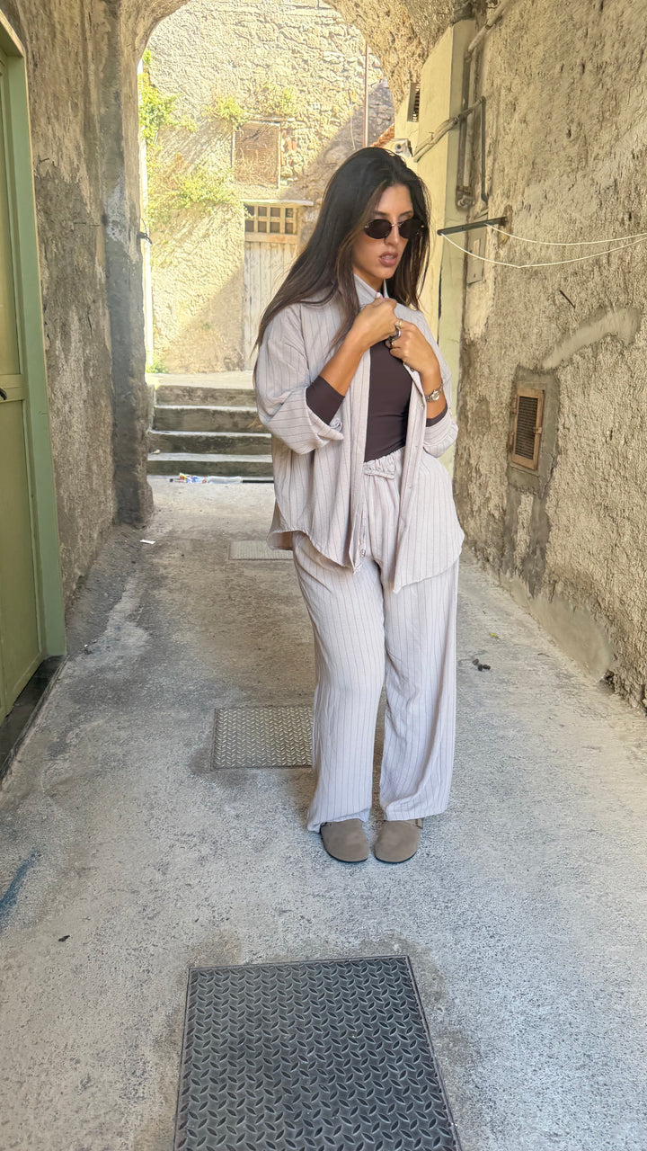 - Il pantalone ha l'elastico in vita ed è un modello palazzo