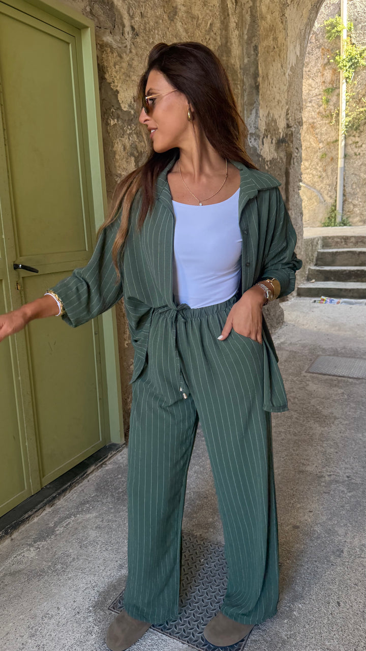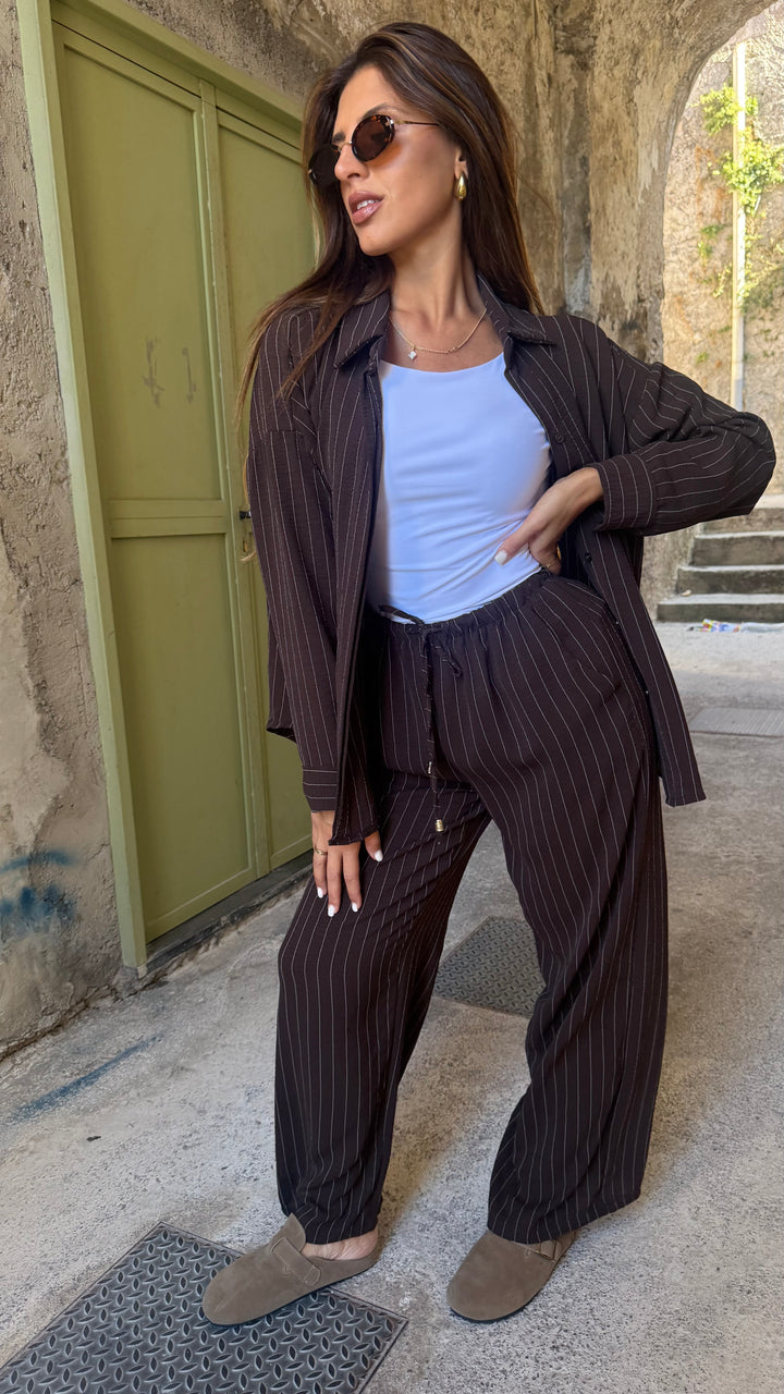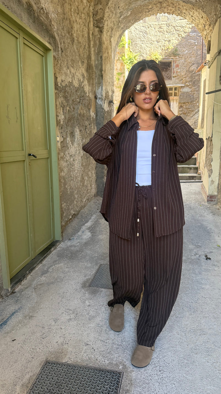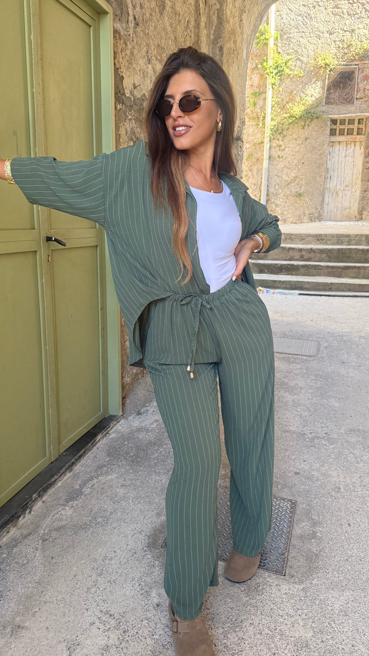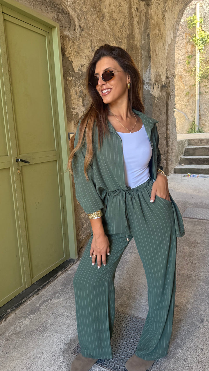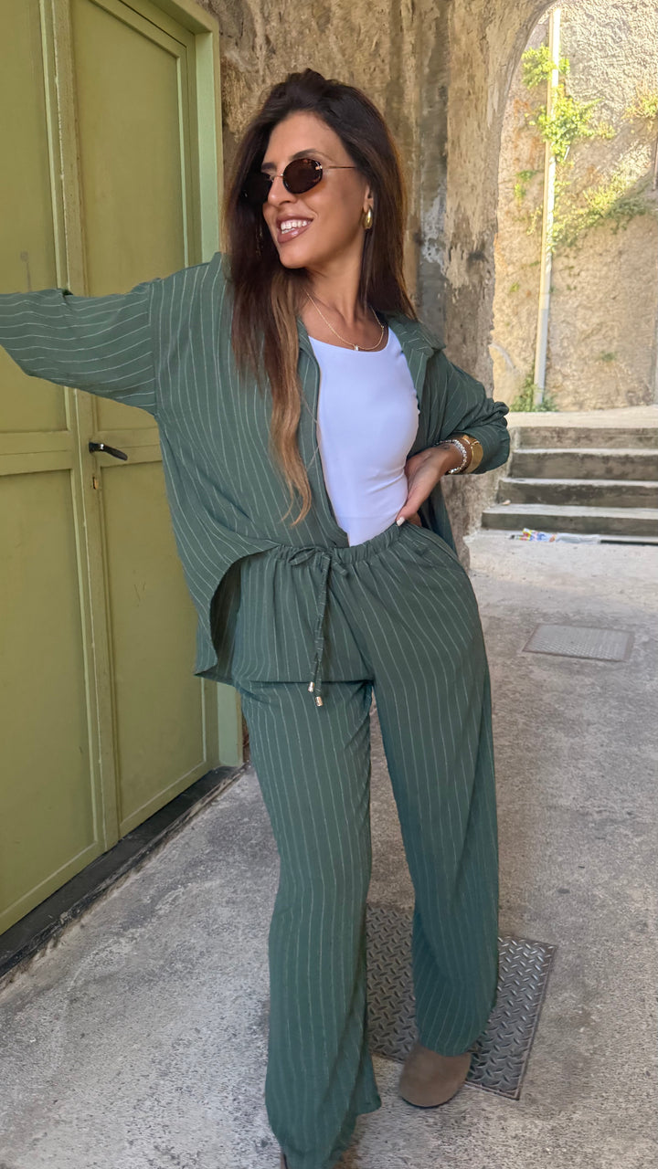 - Il pantalone ha l'elastico in vita ed è un modello palazzo