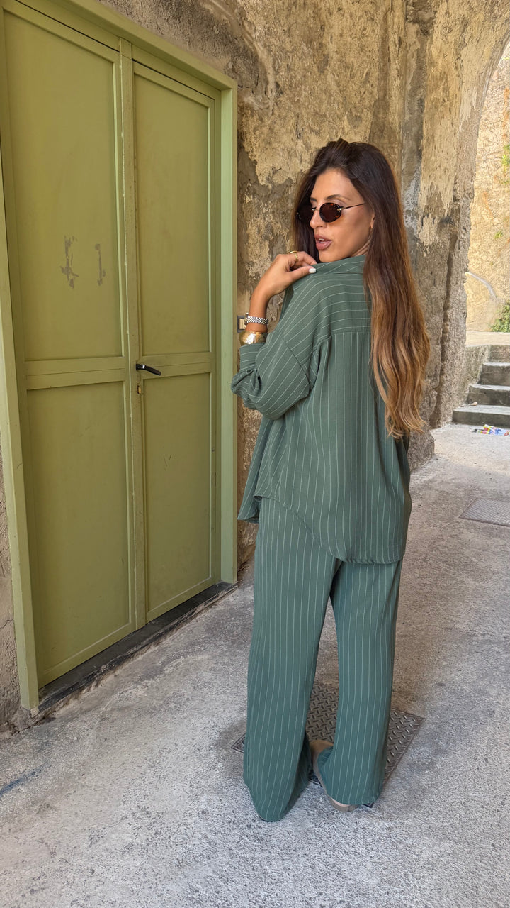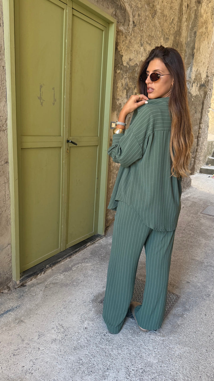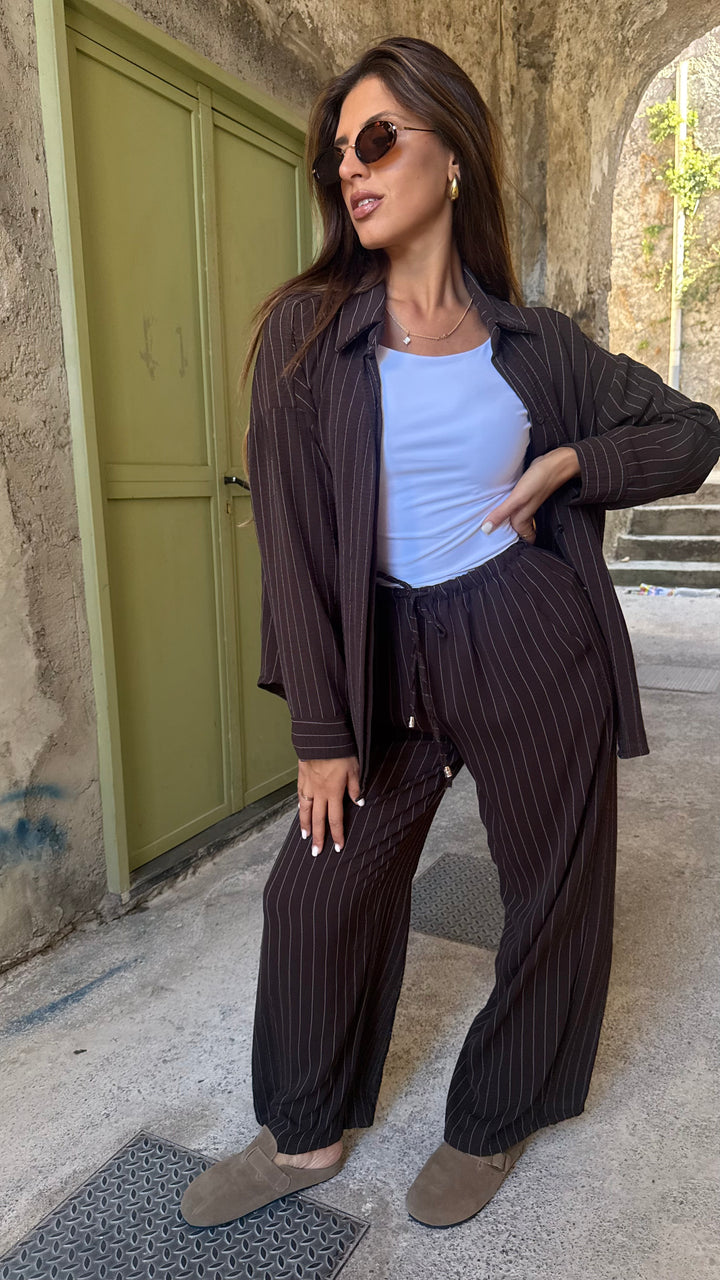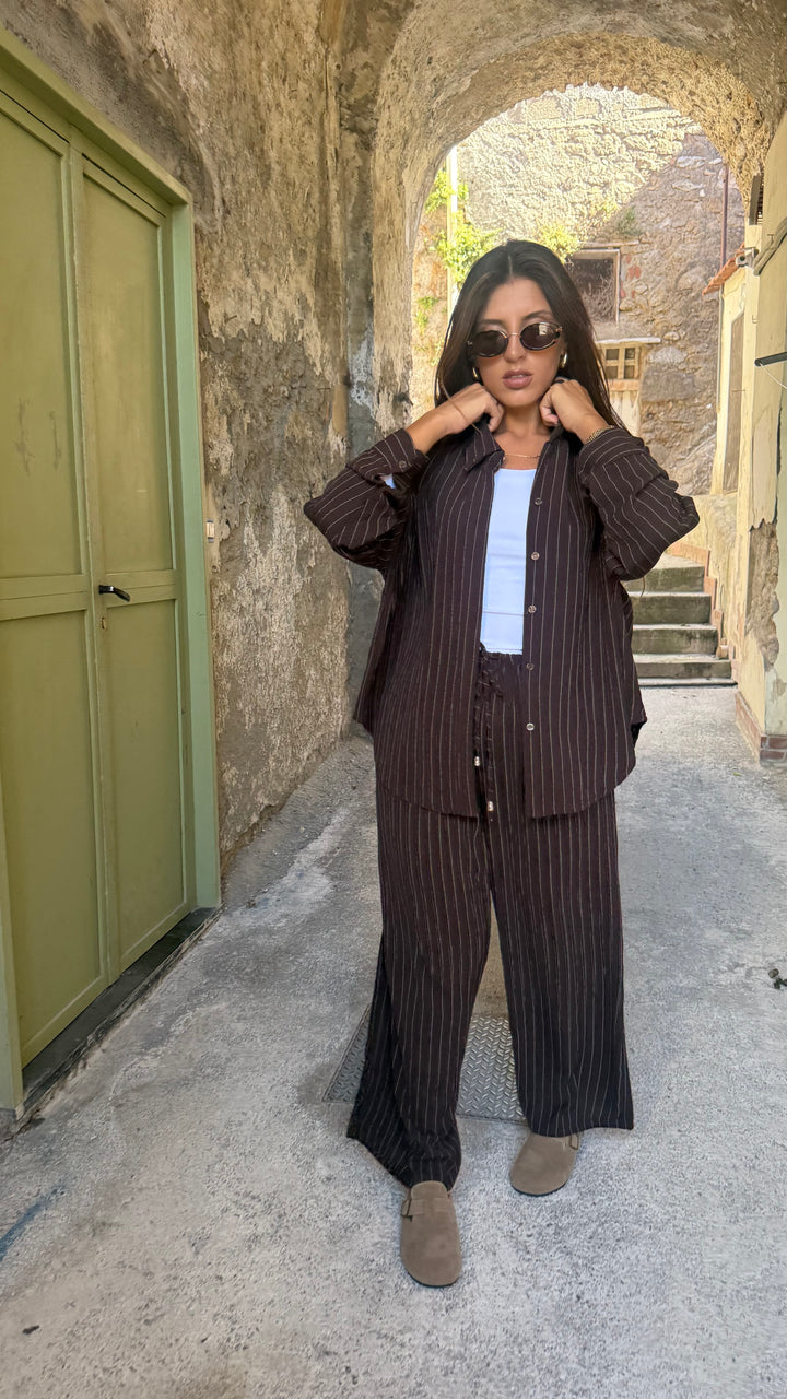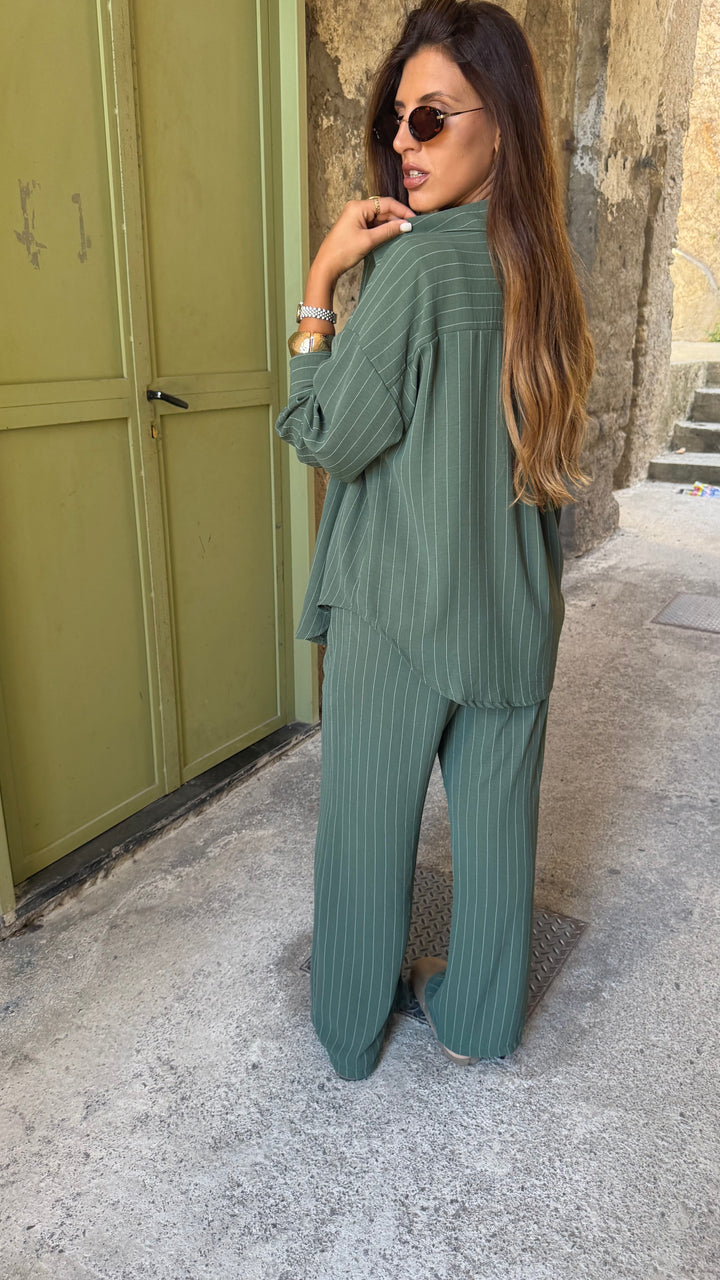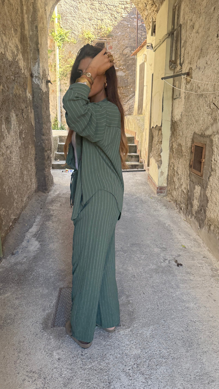 - Il pantalone ha l'elastico in vita ed è un modello palazzo