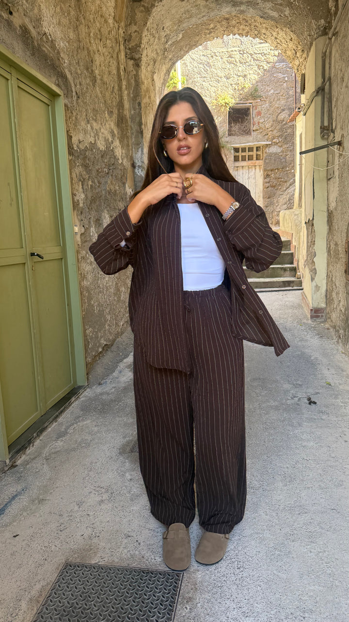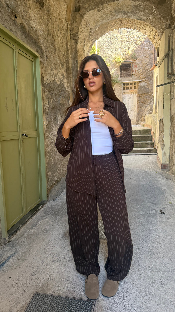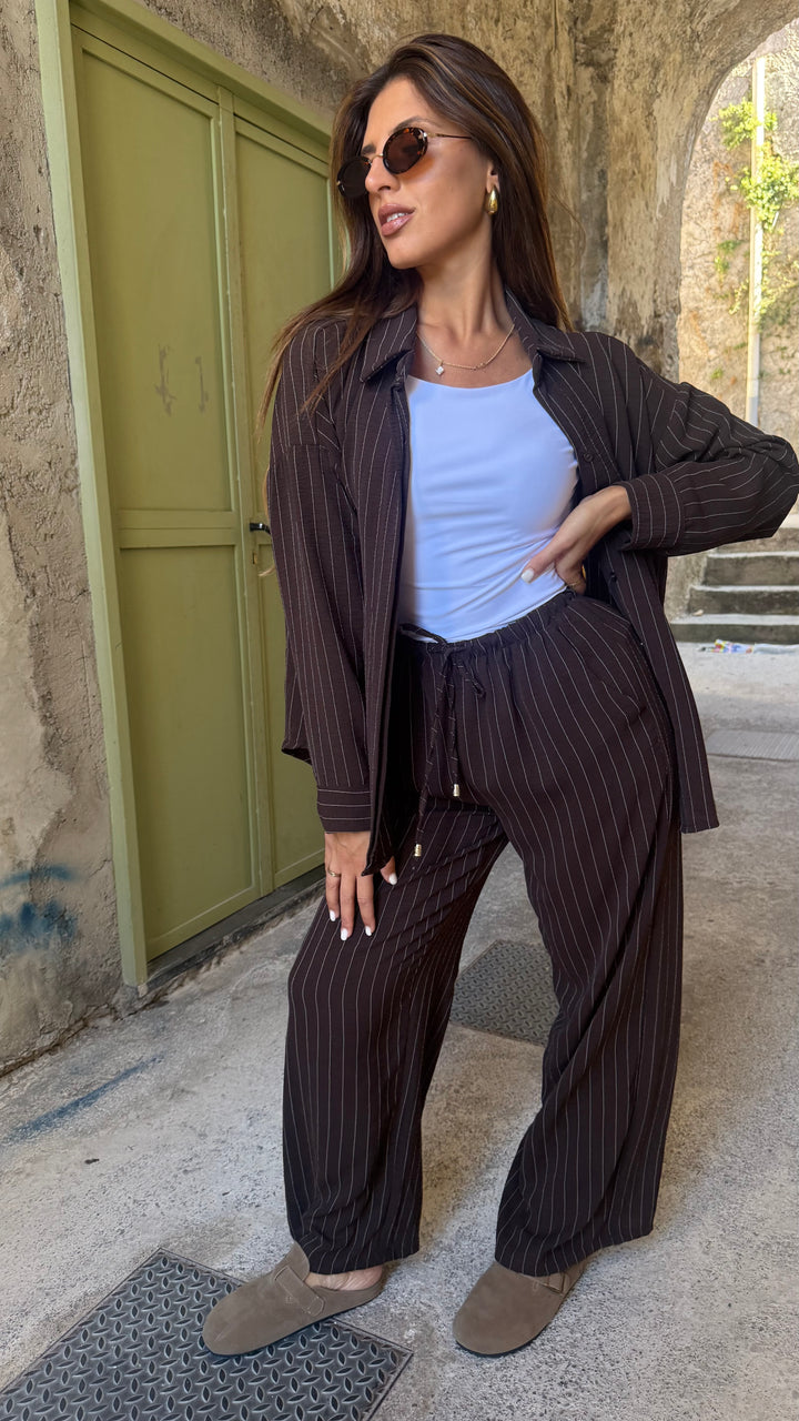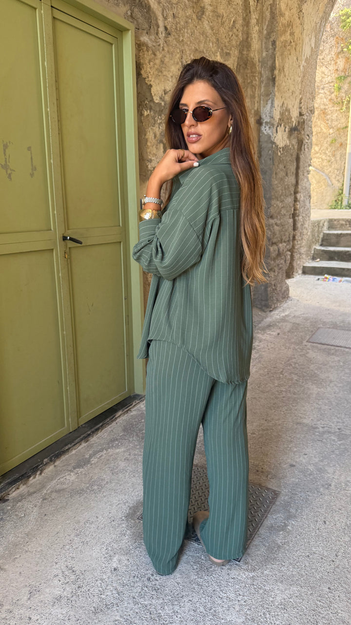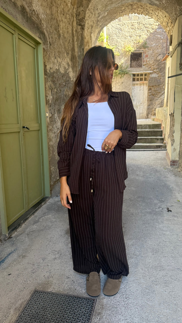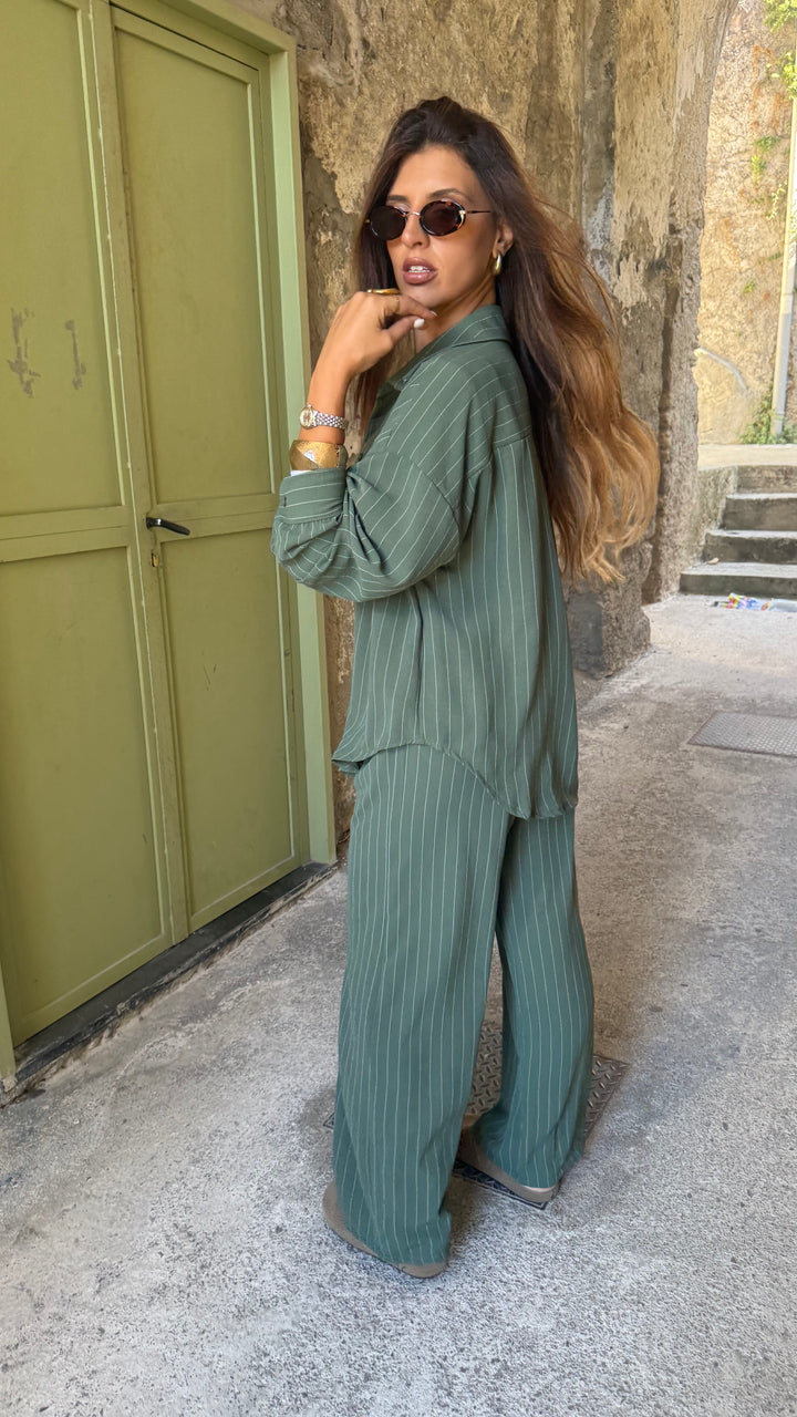 - Il pantalone ha l'elastico in vita ed è un modello palazzo
