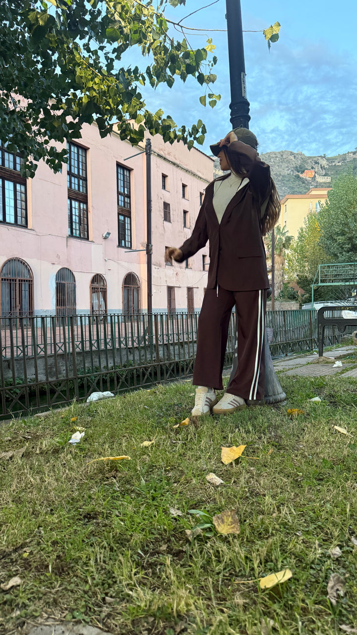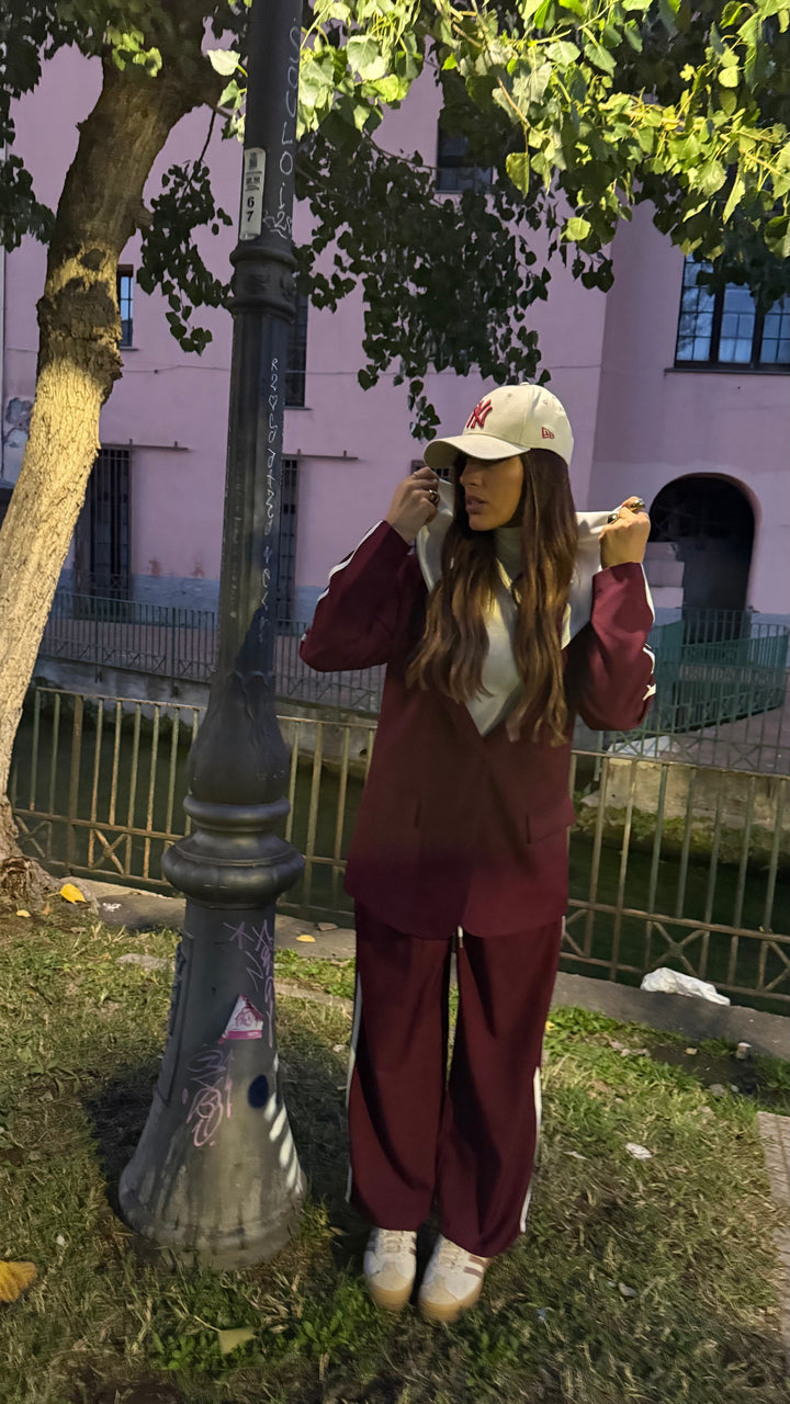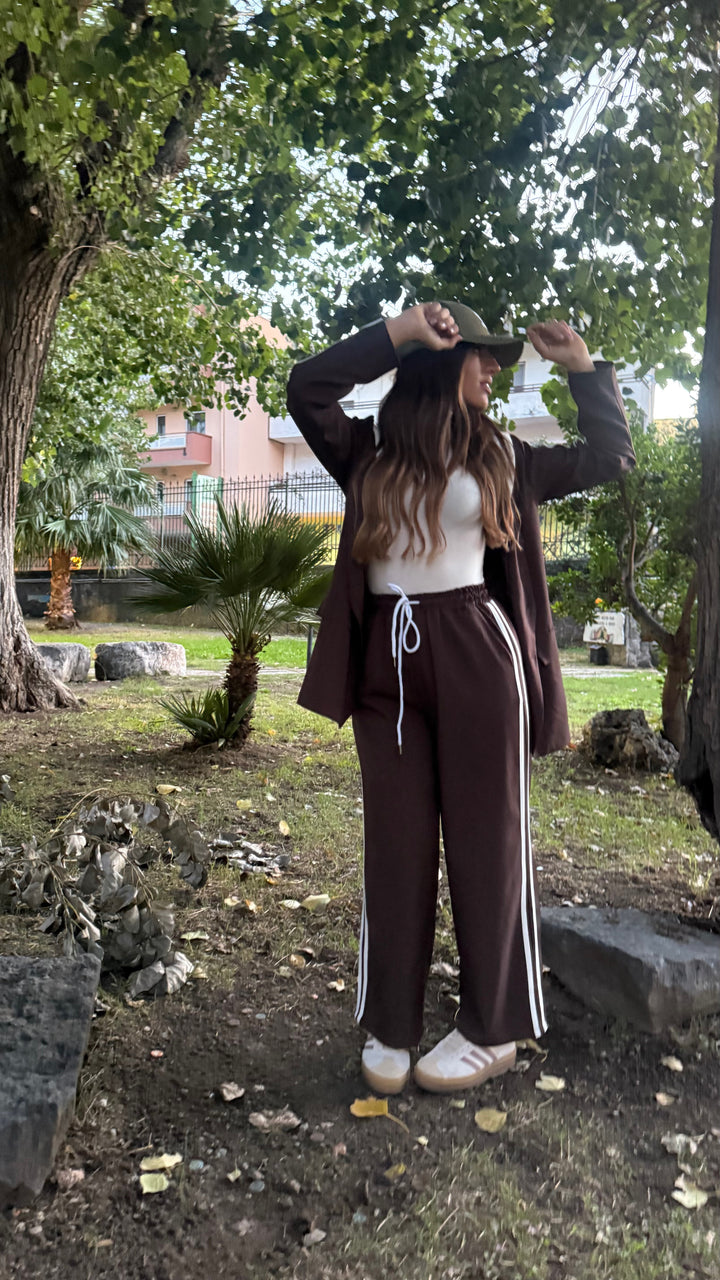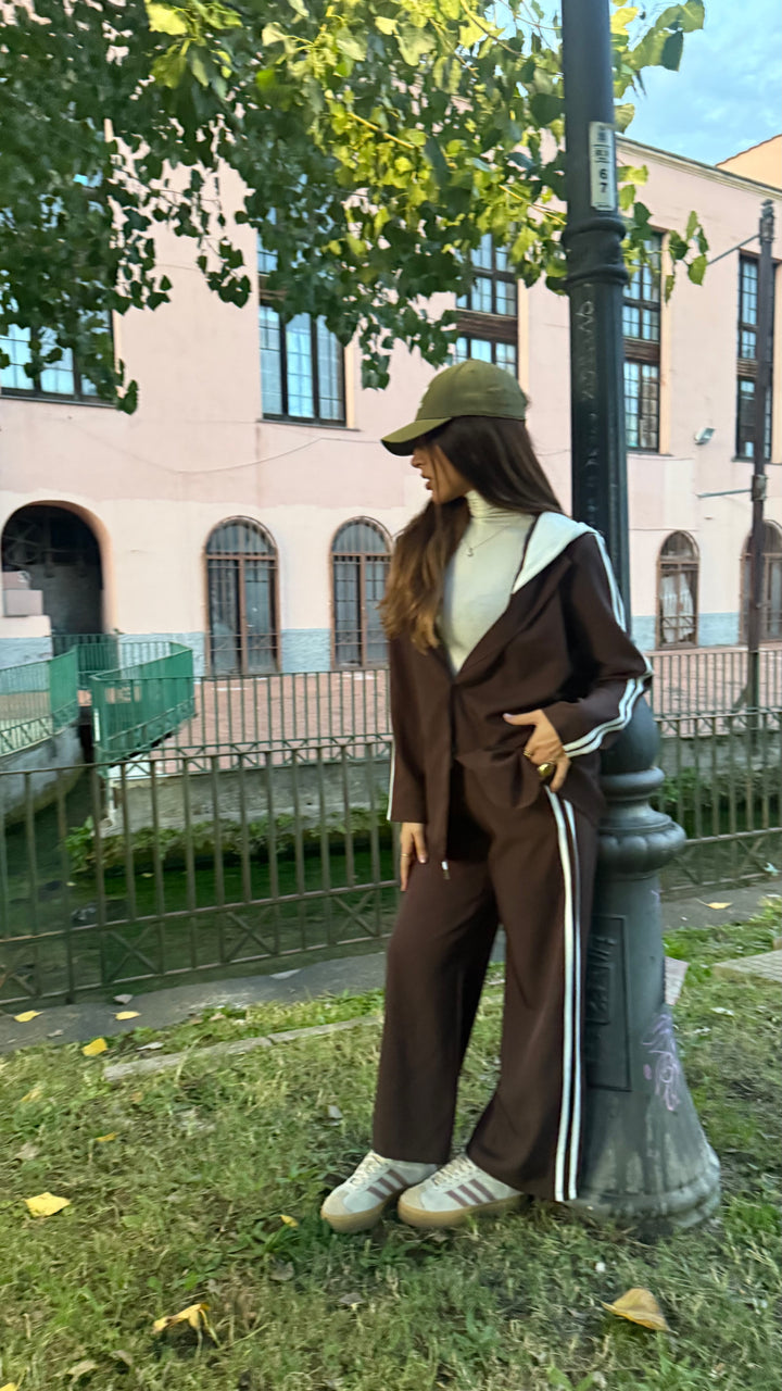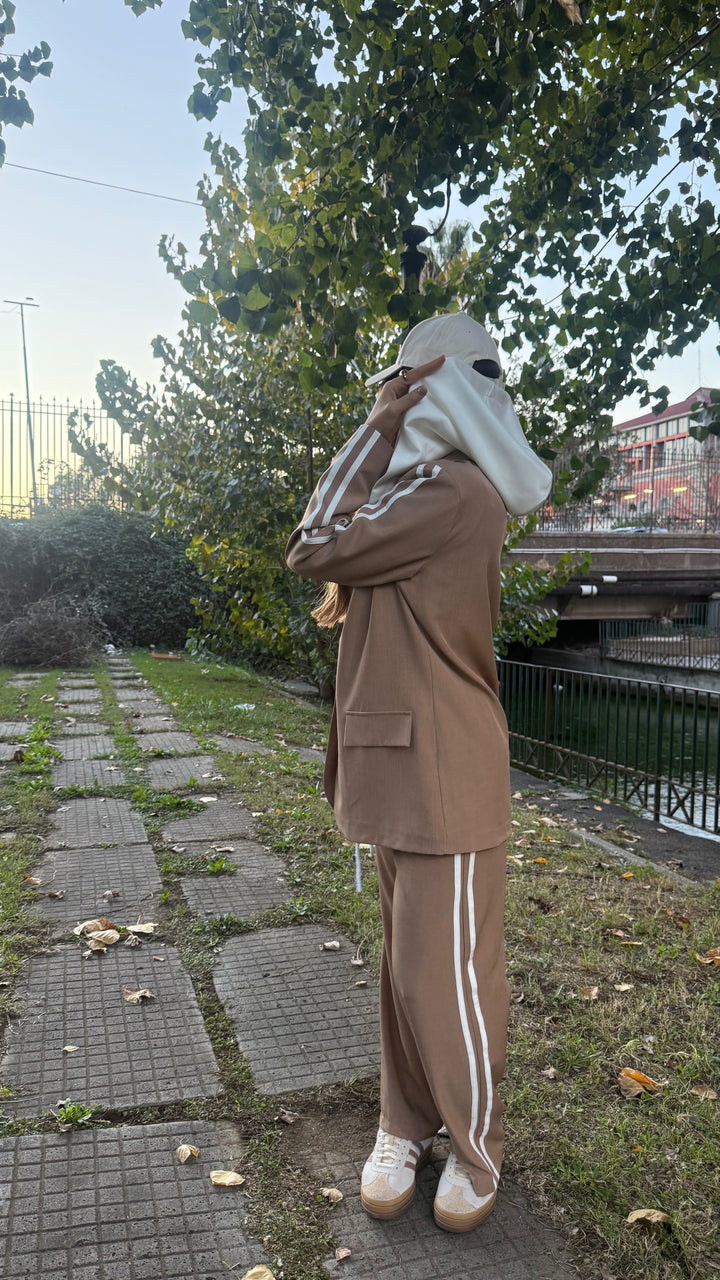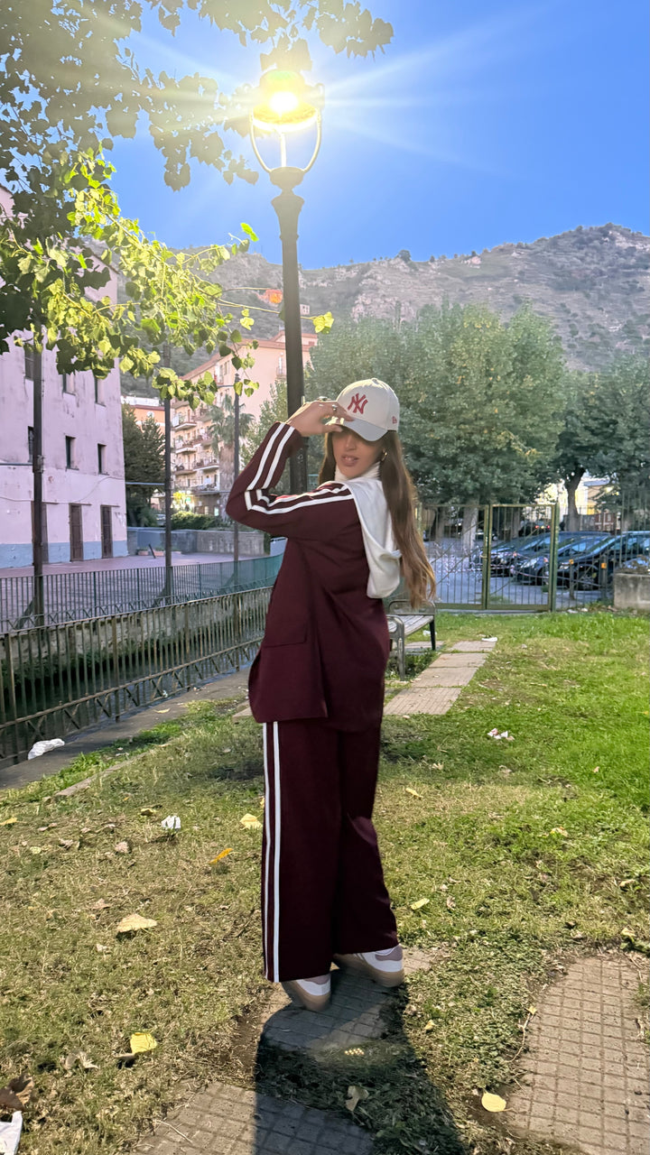 - Il pantalone ha l'elastico in vita ed è modello palazzo
