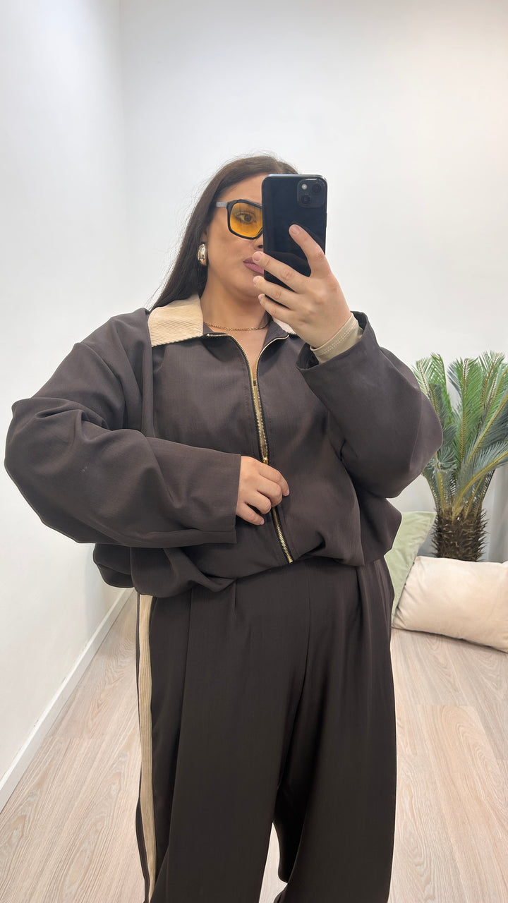 - La giacca ha l'elastico in vita ed è foderata all'interno