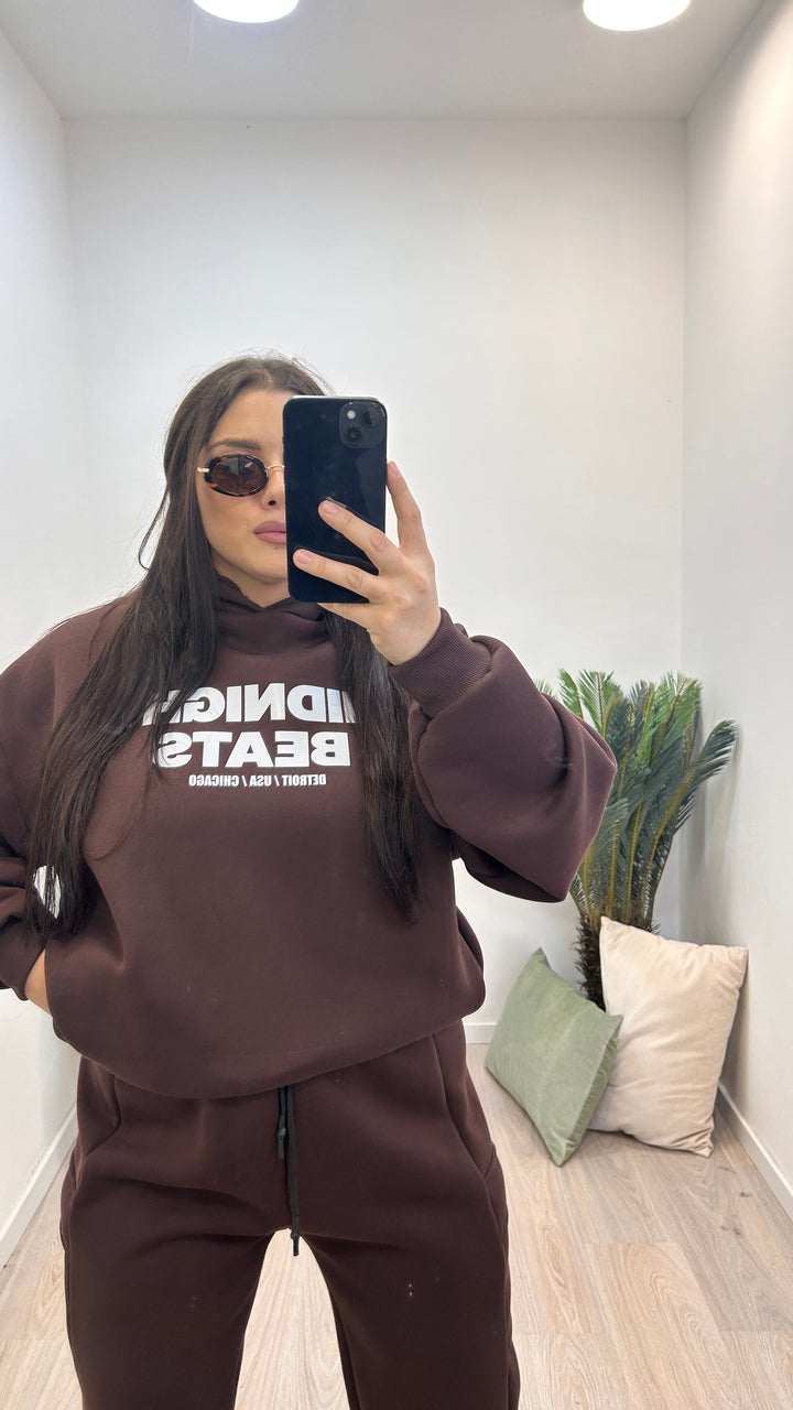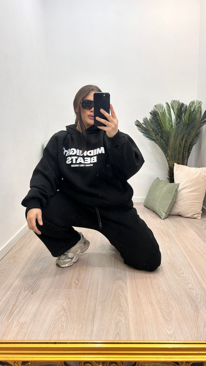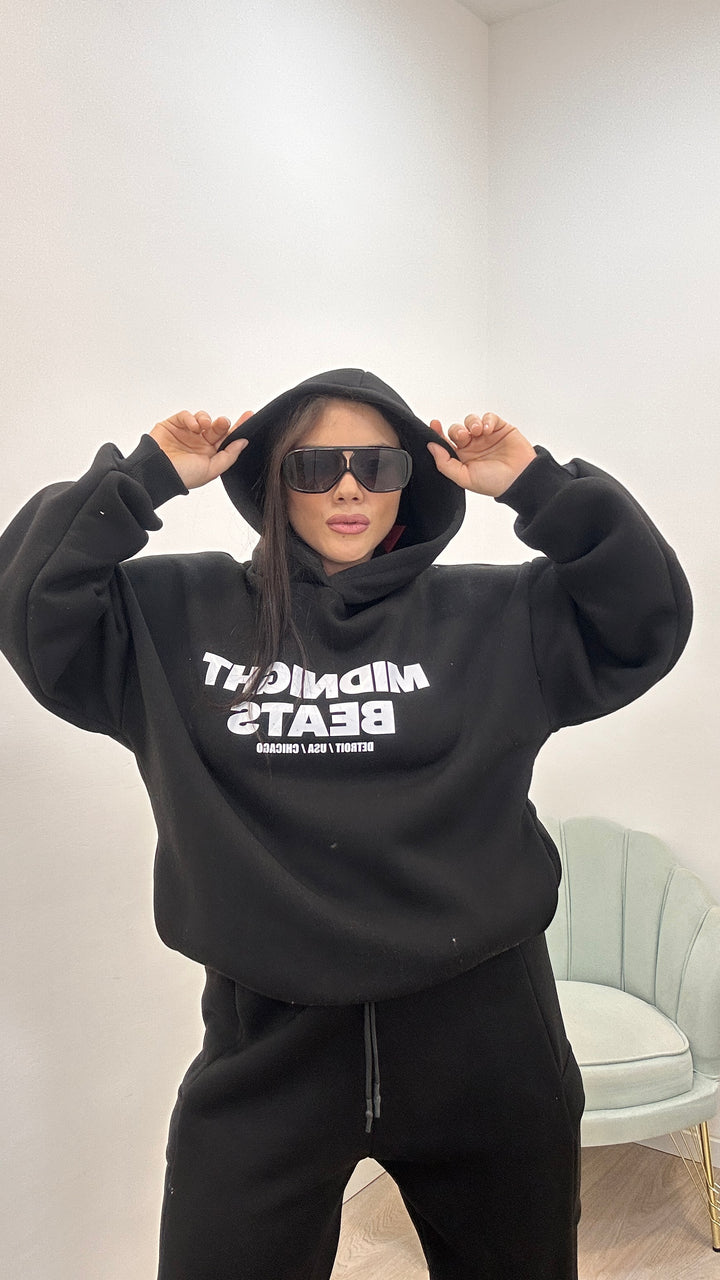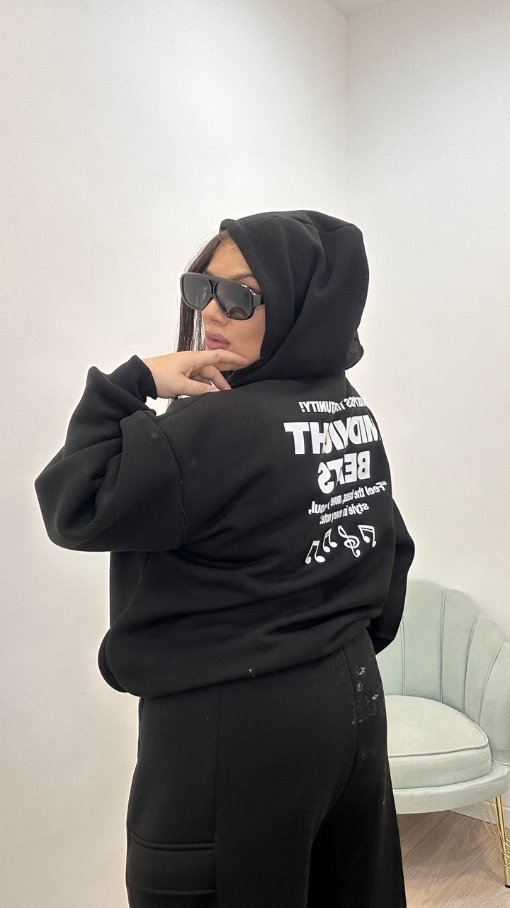 - La felpa ha lunghezza basic, il cappuccio ed è modello over