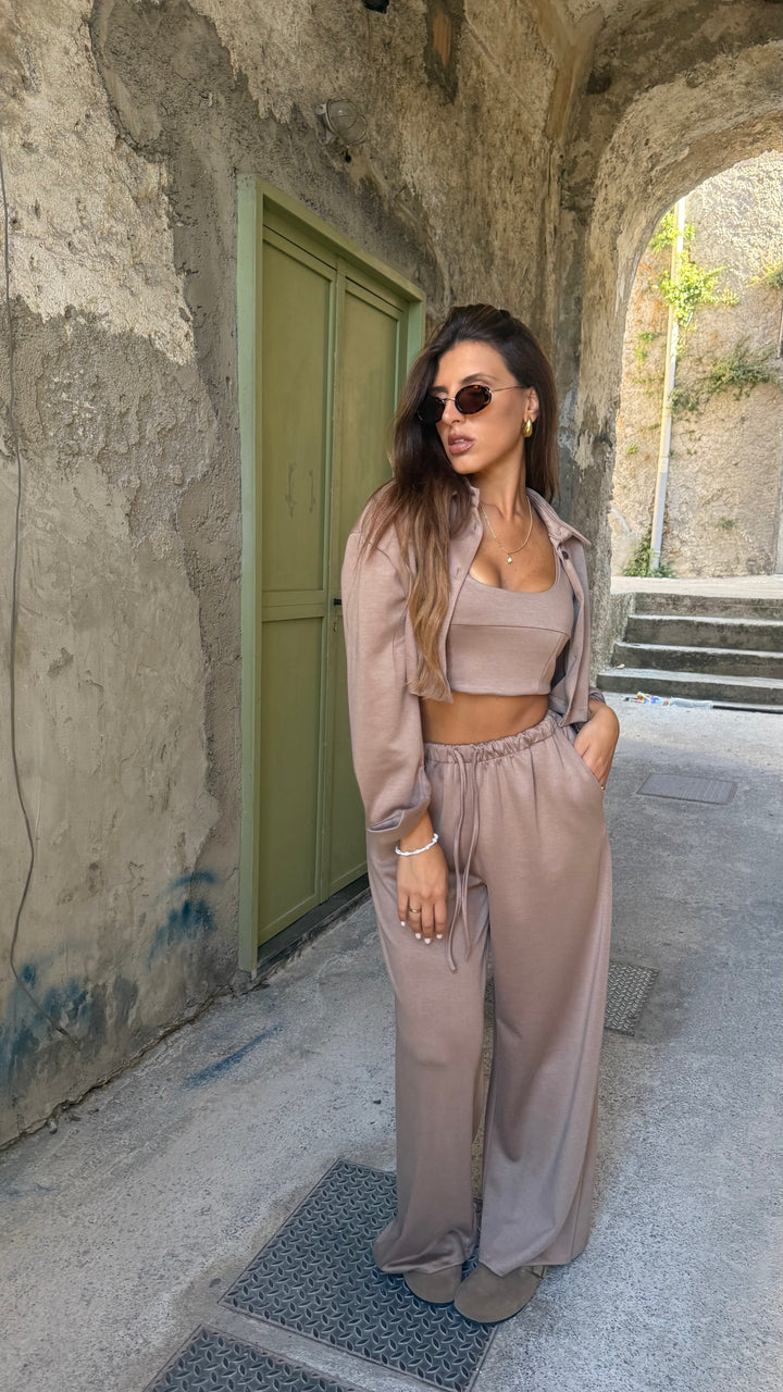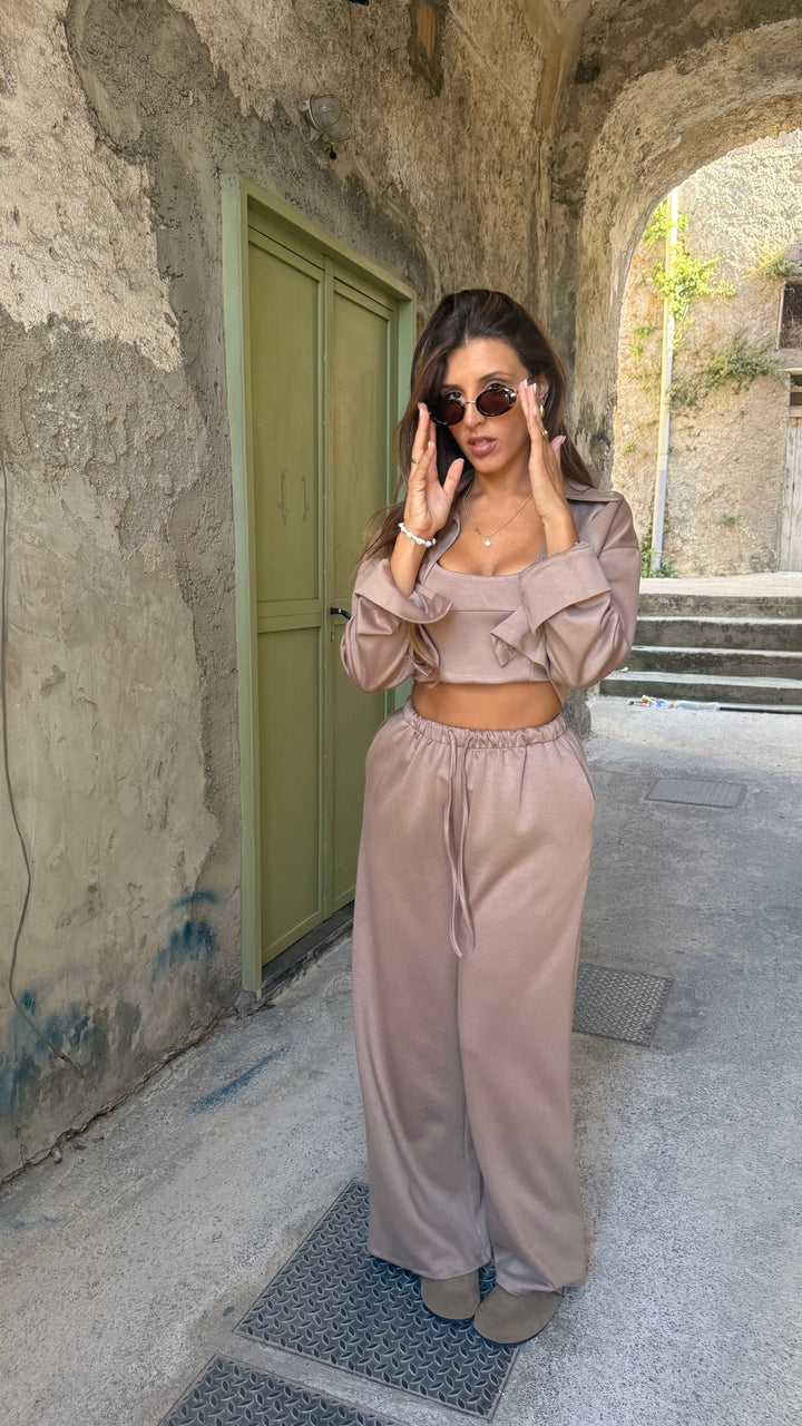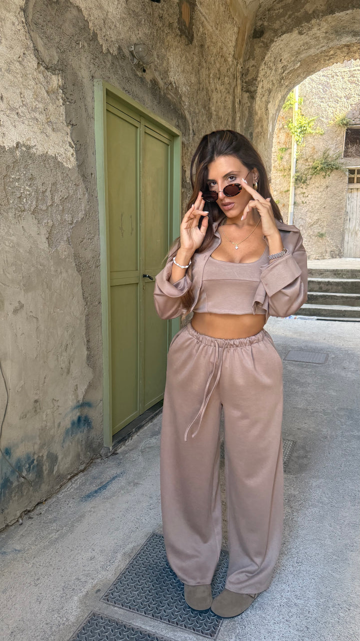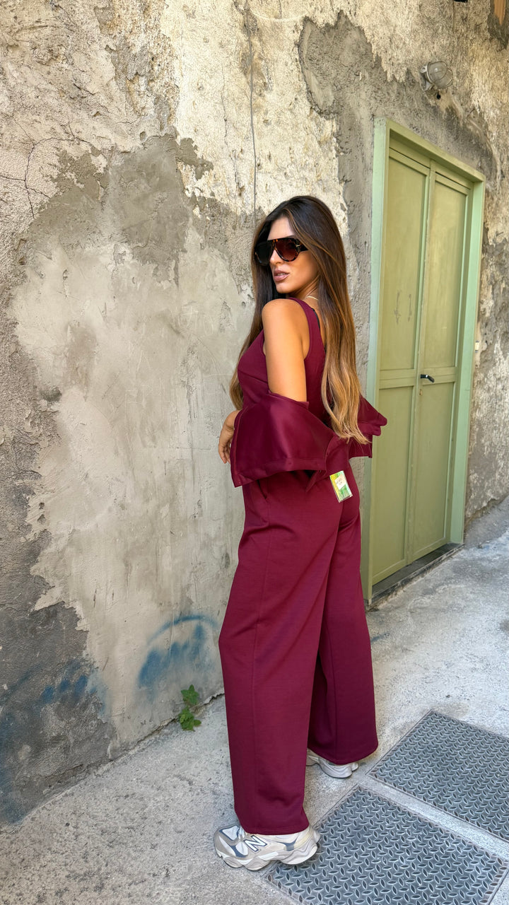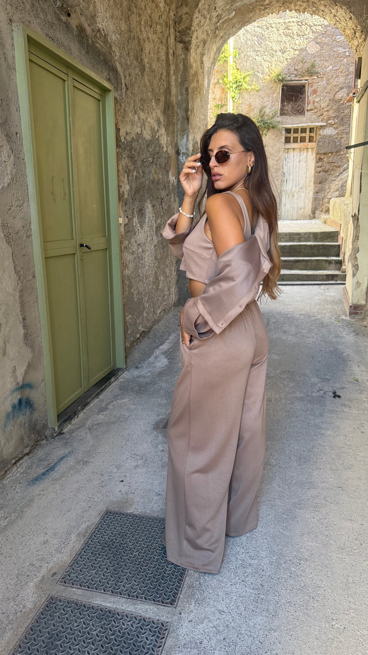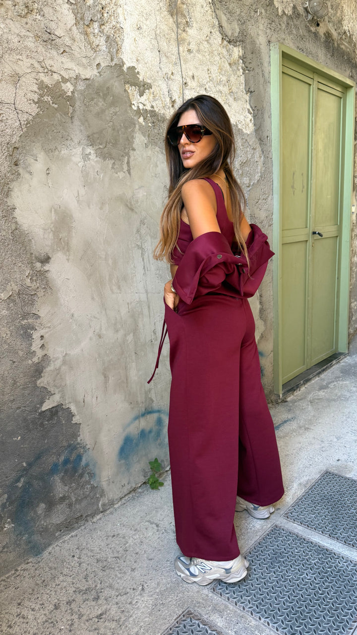- Il pantalone ha l'elastico in vita ed è modello palazzo