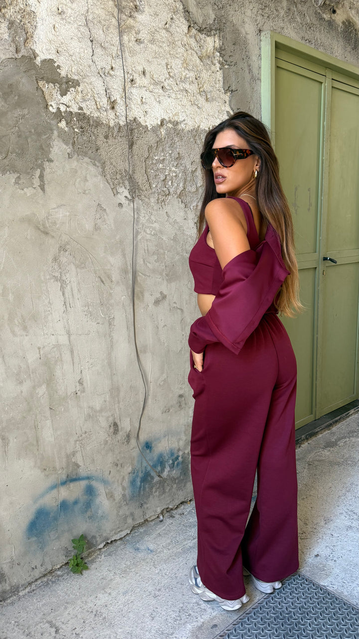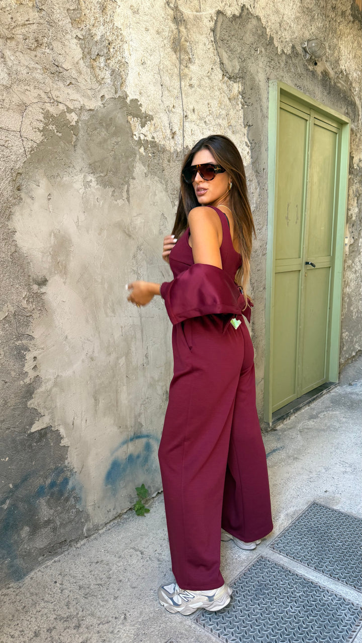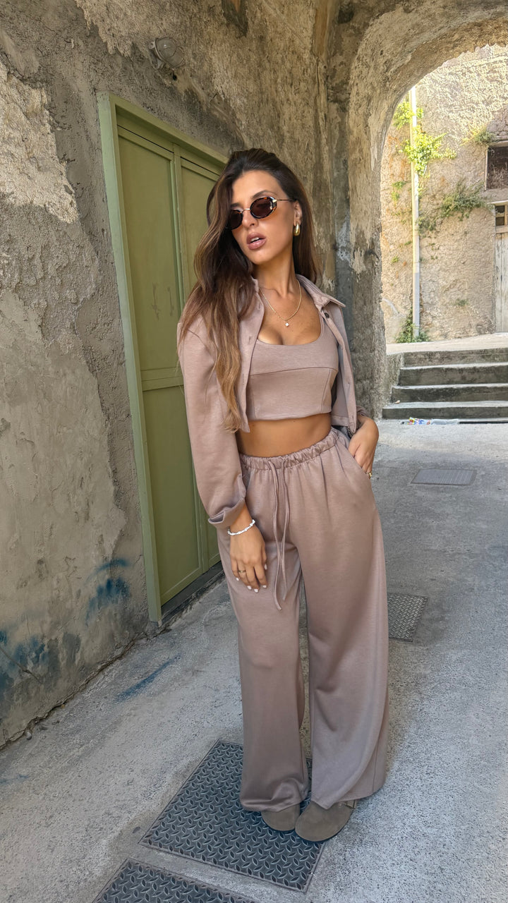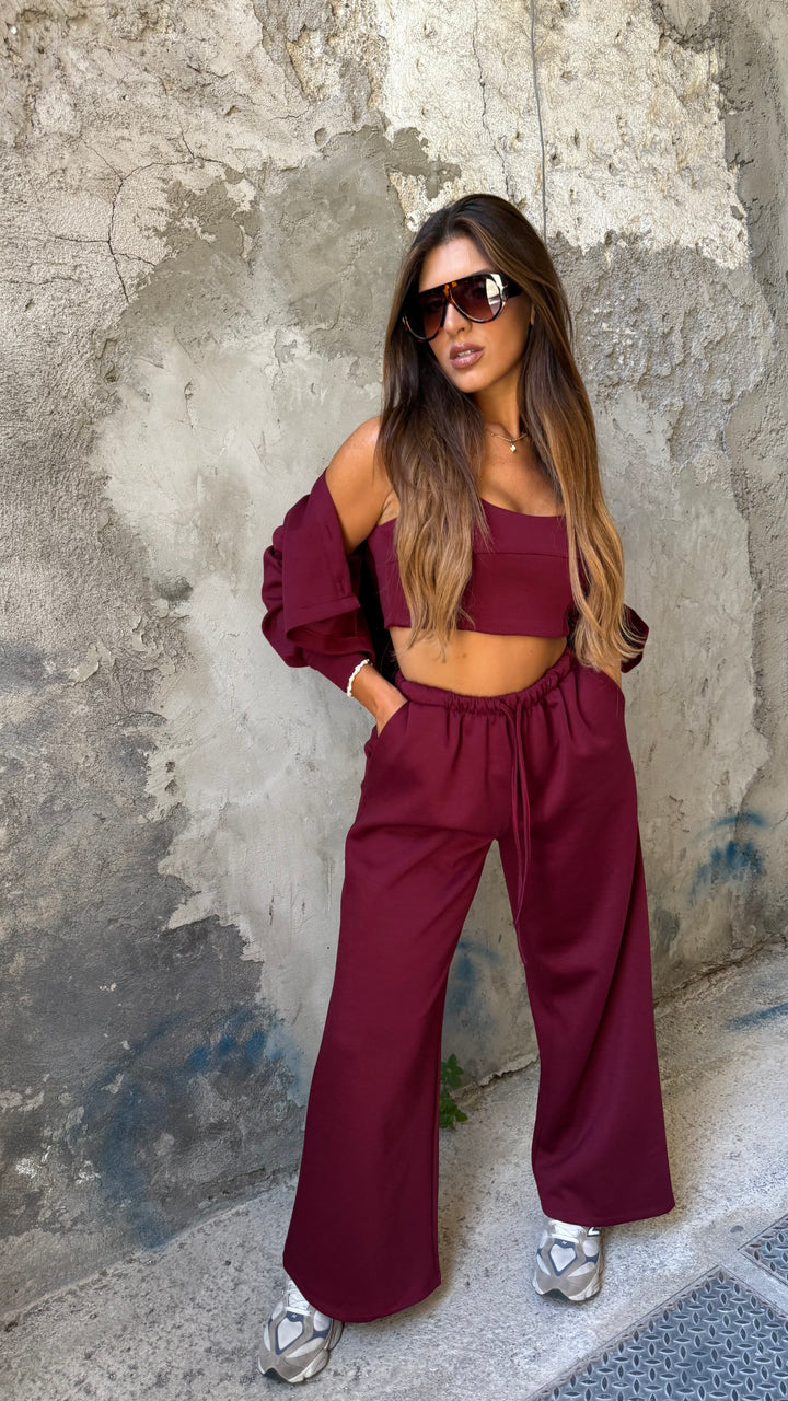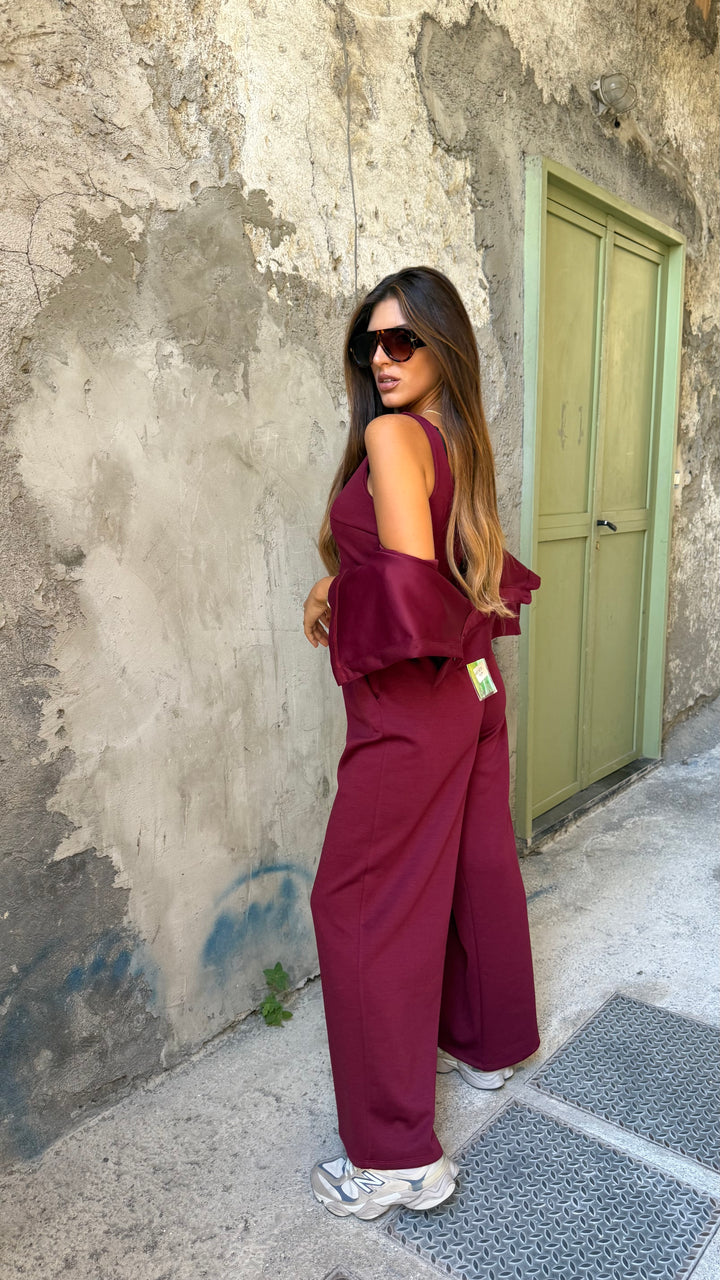 - Il pantalone ha l'elastico in vita ed è modello palazzo