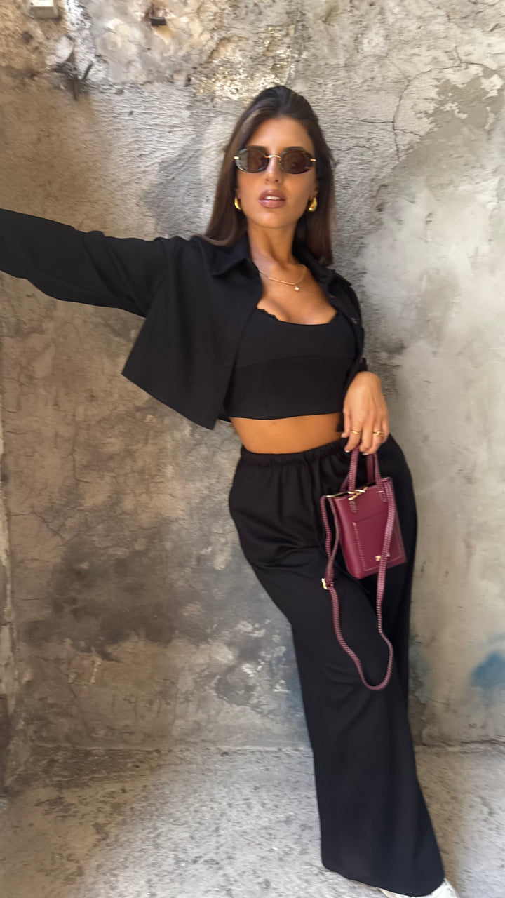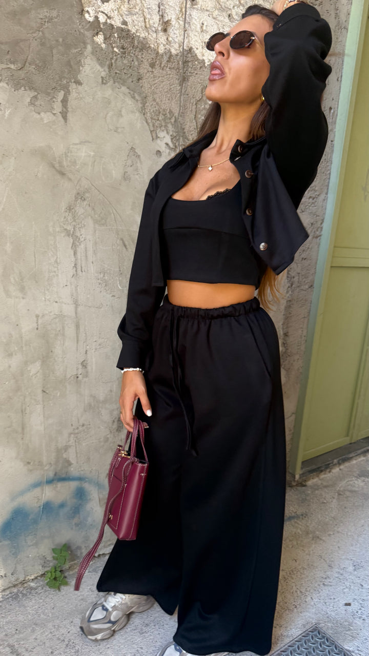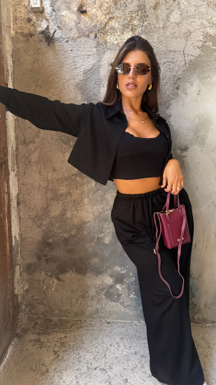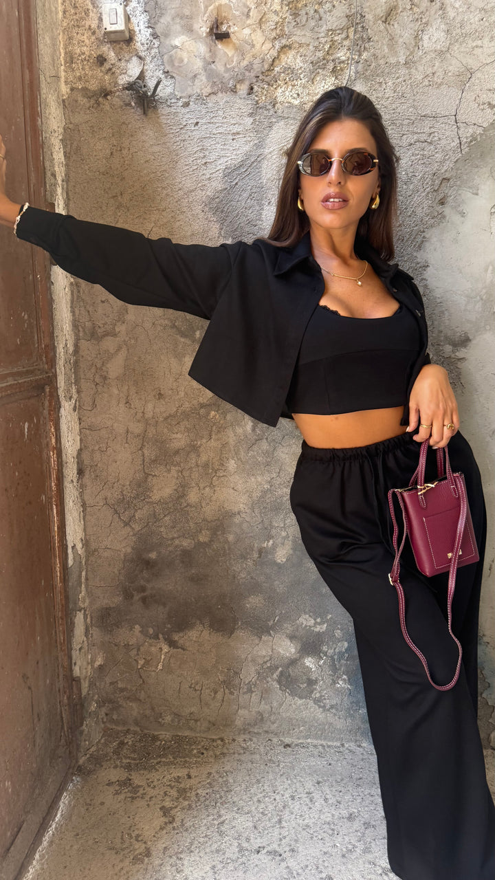 - La camicia ha chiusura con bottoni e lunghezza crop
