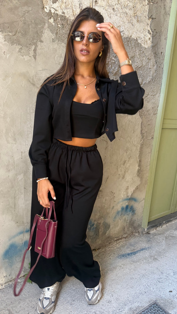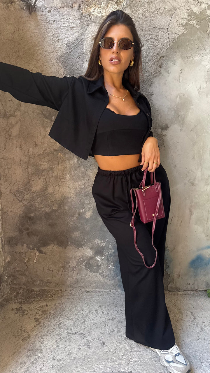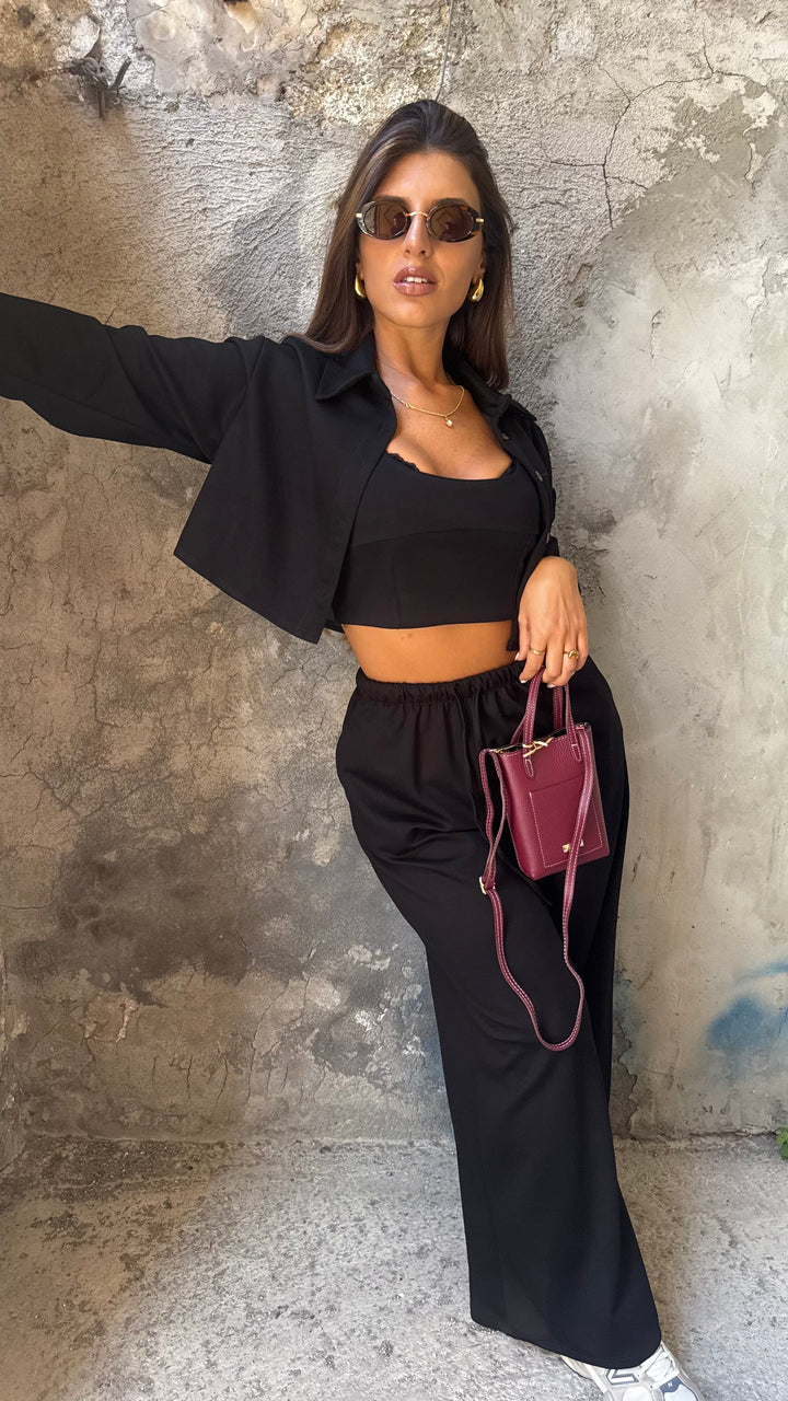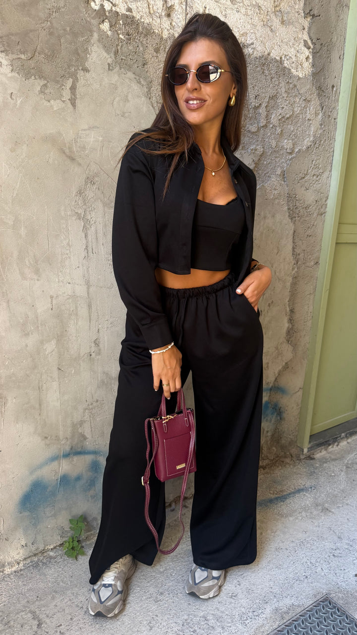 - La camicia ha chiusura con bottoni e lunghezza crop