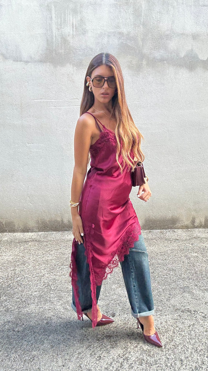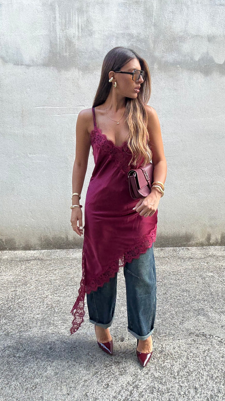 - Rifinito con pizzo sia sullo scollo che alla fine