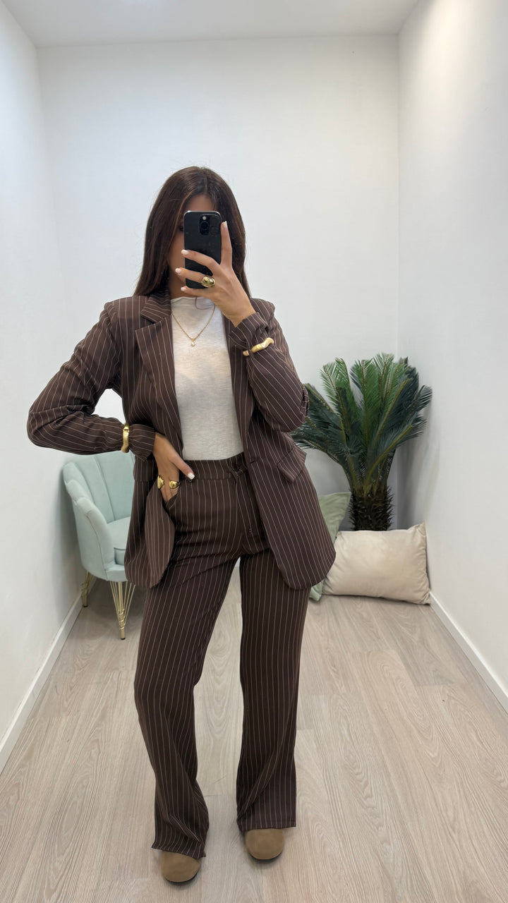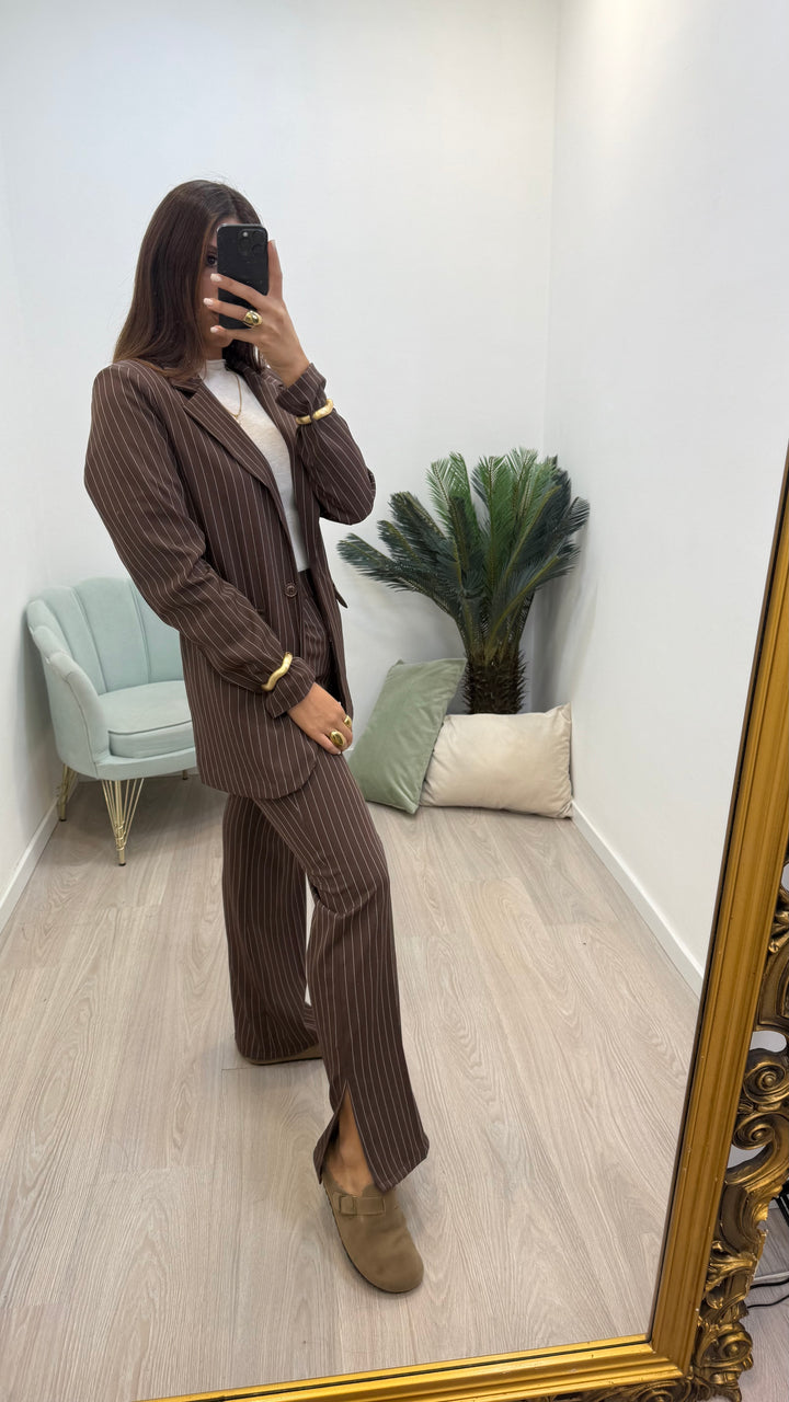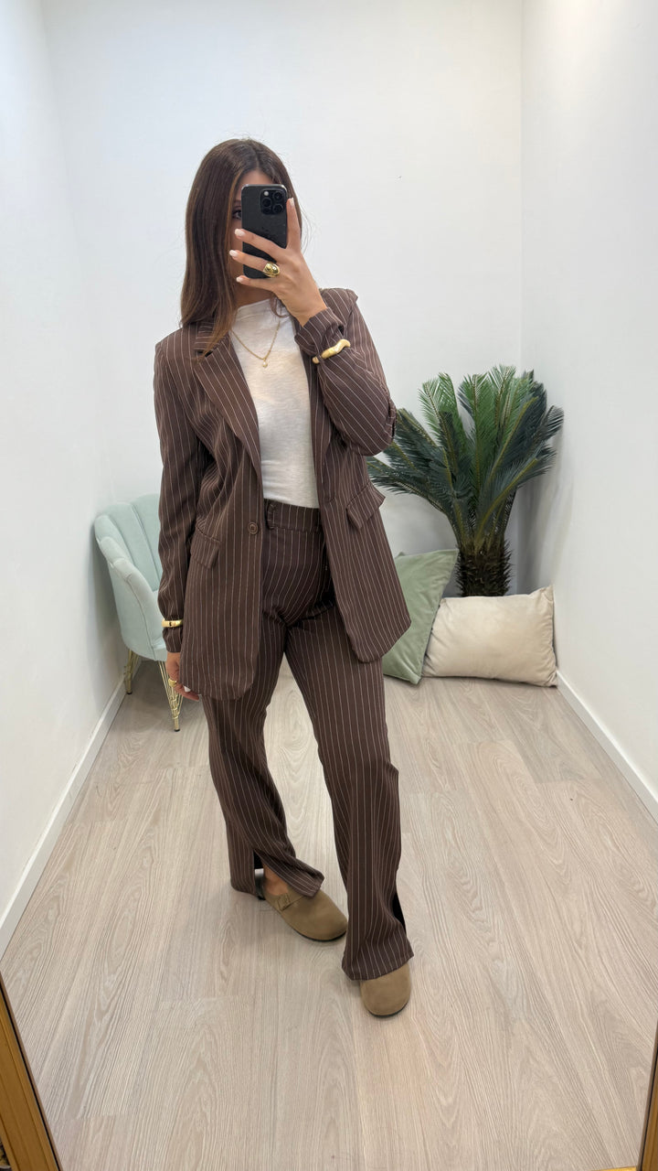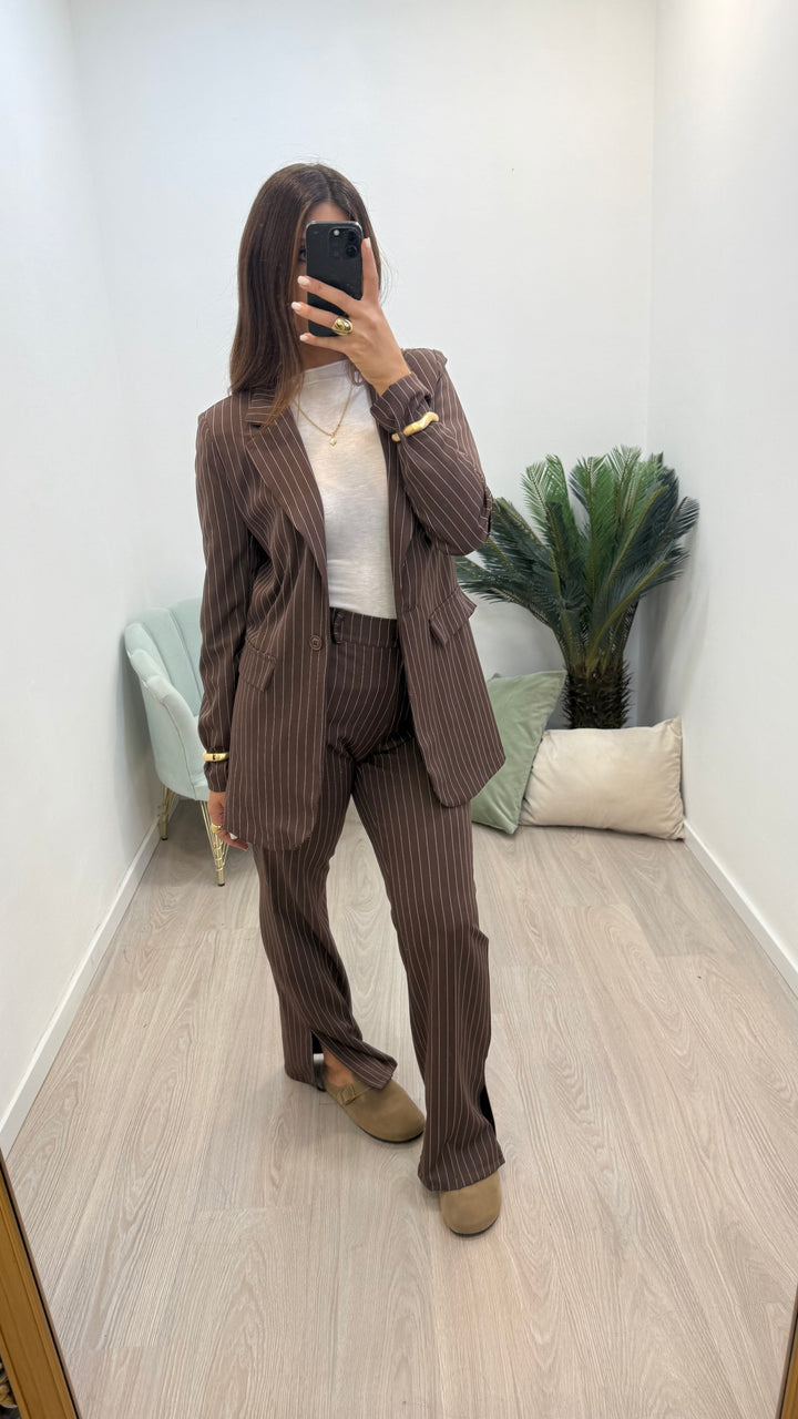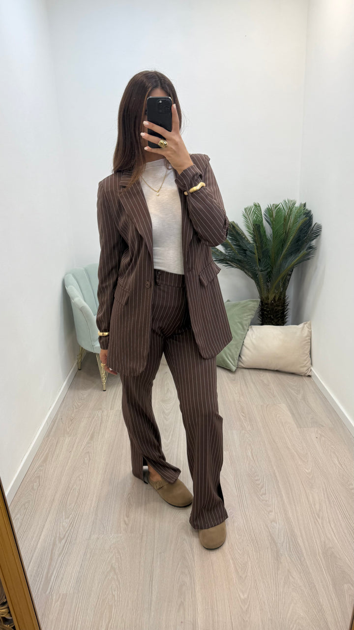 - Il pantalone ha l'elastico sul retro ed è modello palazzo con spacchetti ai lati