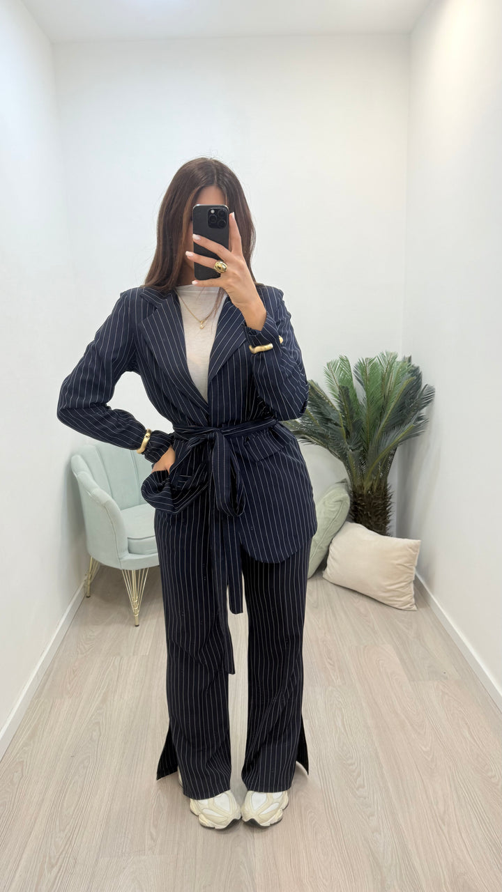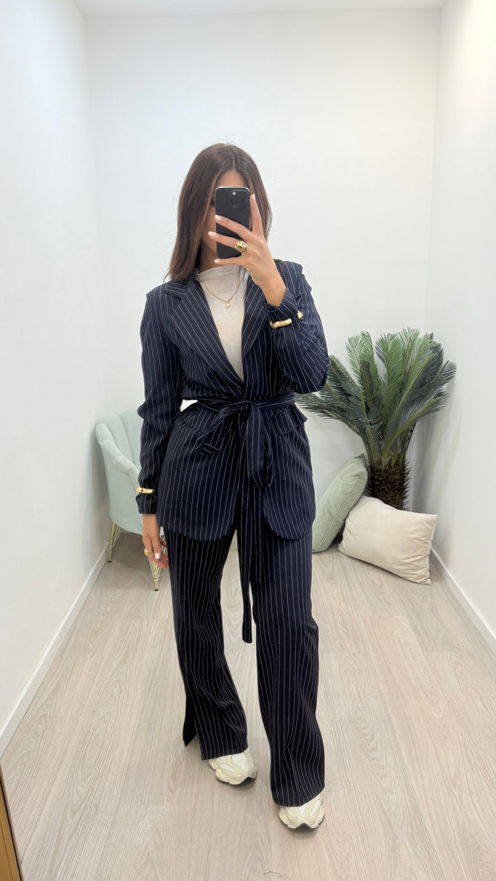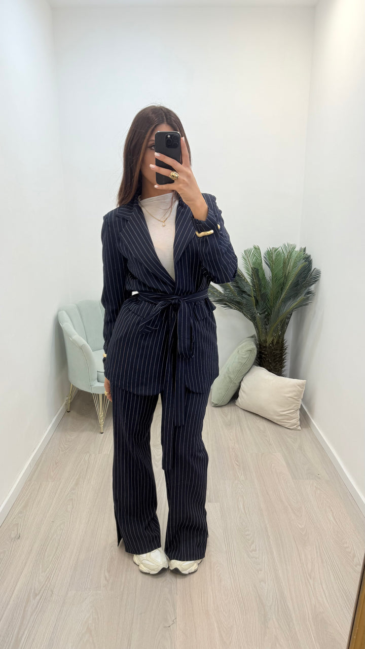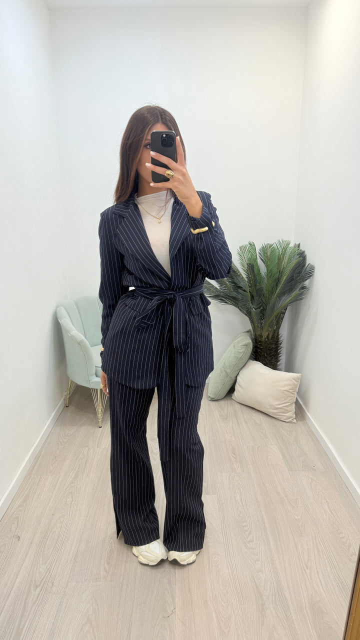 - La giacca ha lunghezza basic e la fusciacca in vita