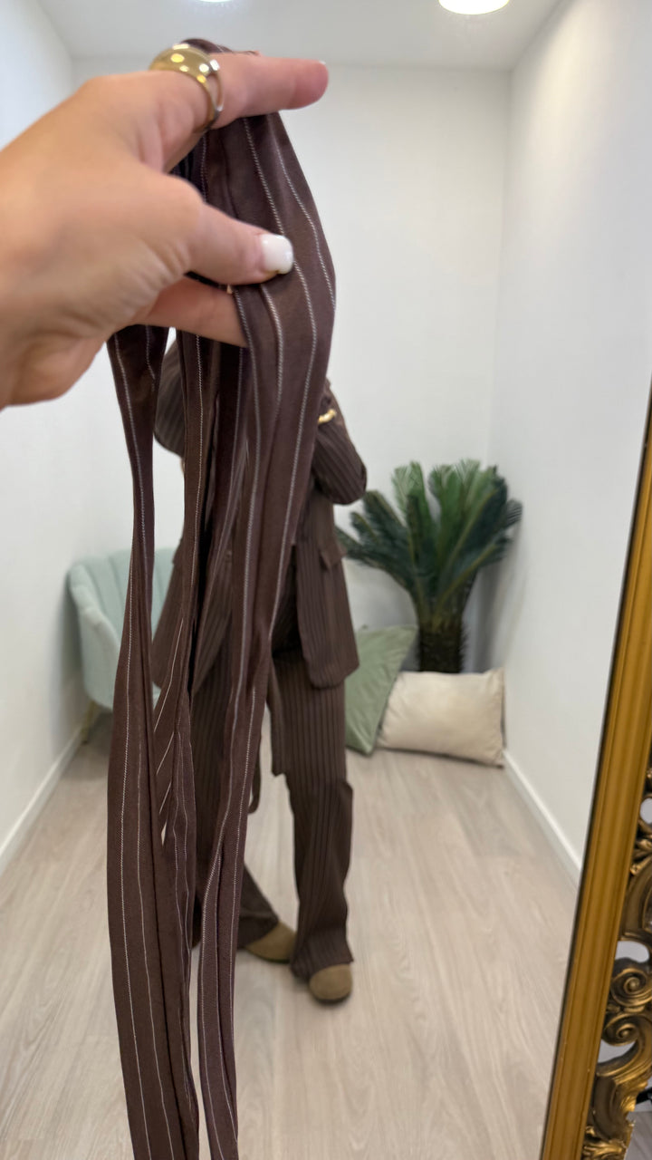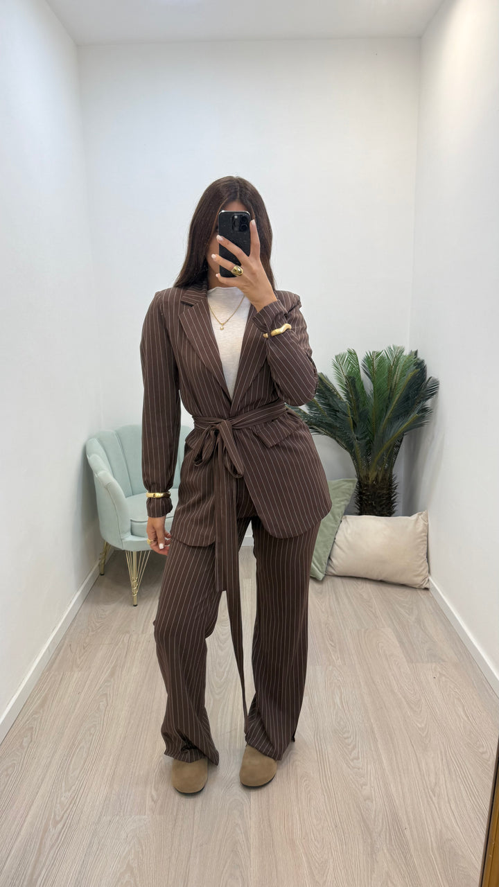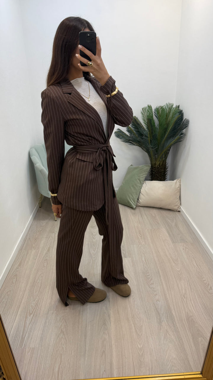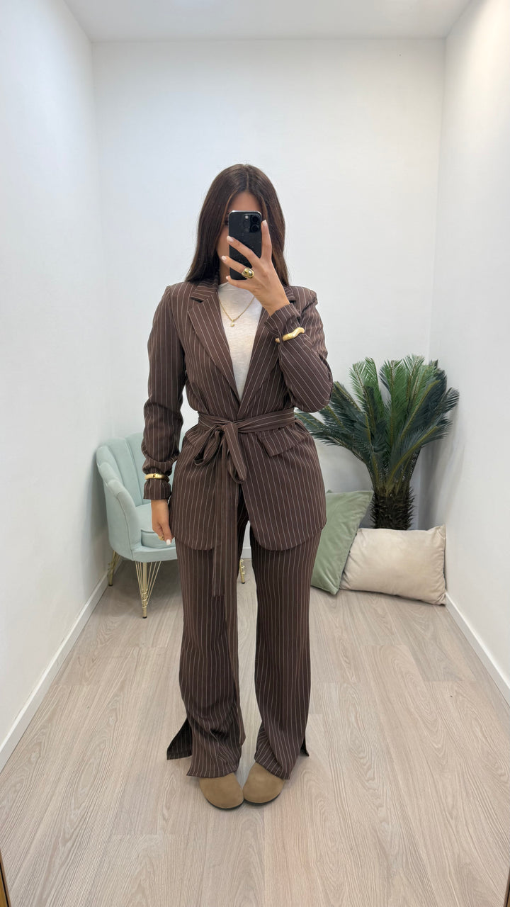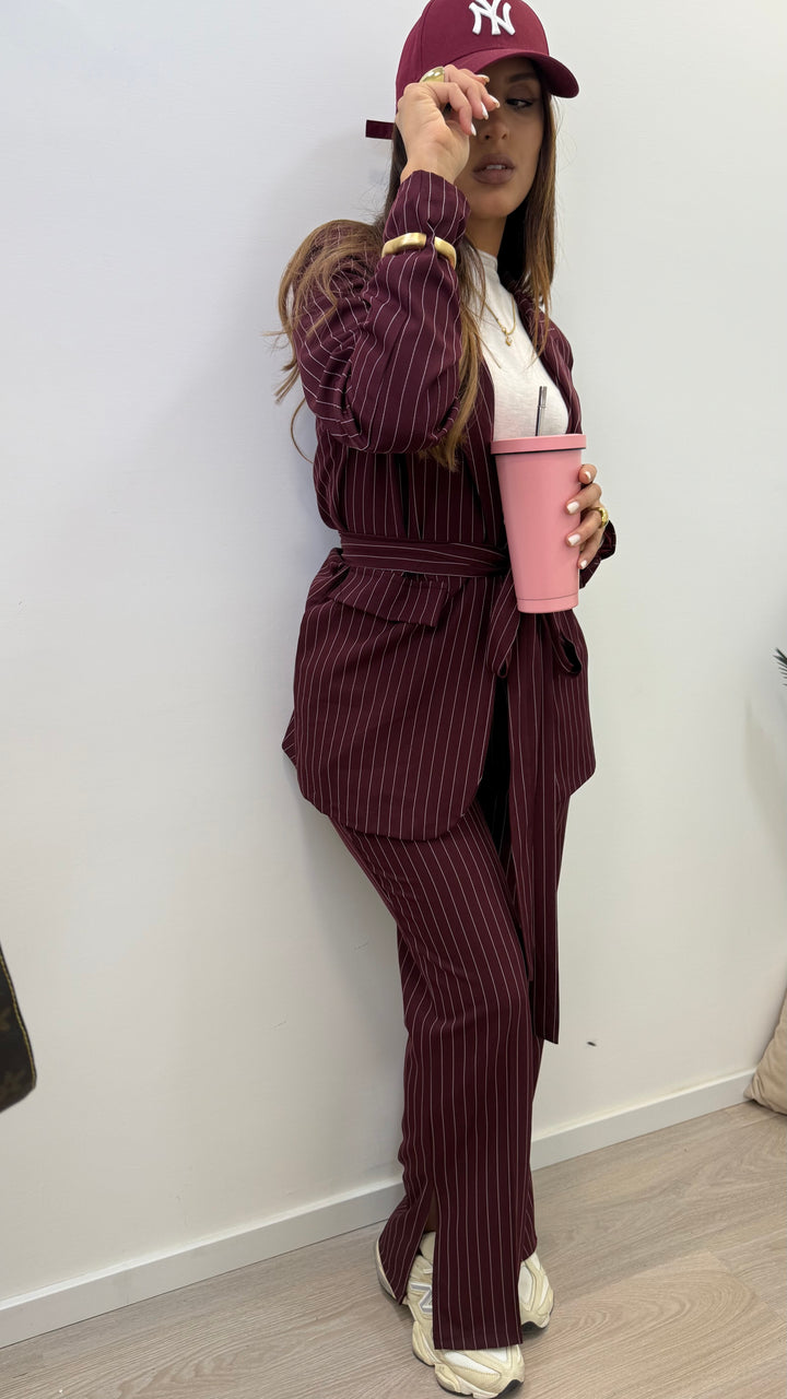 - La giacca ha lunghezza basic e la fusciacca in vita